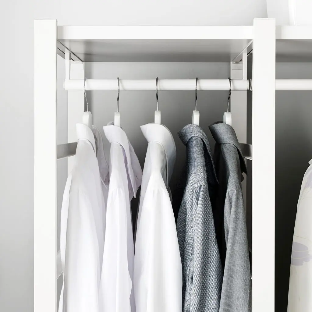При использовании платяной штанги со стойкой ЭЛВАРЛИ сборка может осуществлять двумя способами: с полкой ЭЛВАРЛИ вверху или без нее.Платяная штанга вмещает приблизительно 10–12 рубашек на плечиках.Подходит для боковой стойки ЭЛВАРЛИ и стойки ЭЛВАРЛИ.Дизайнер