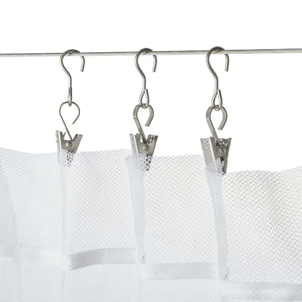 Благодаря зажимам гардины легко повесить на гардинную шину.Нержавеющая сталь; можно использовать во влажных помещениях.Дизайнер