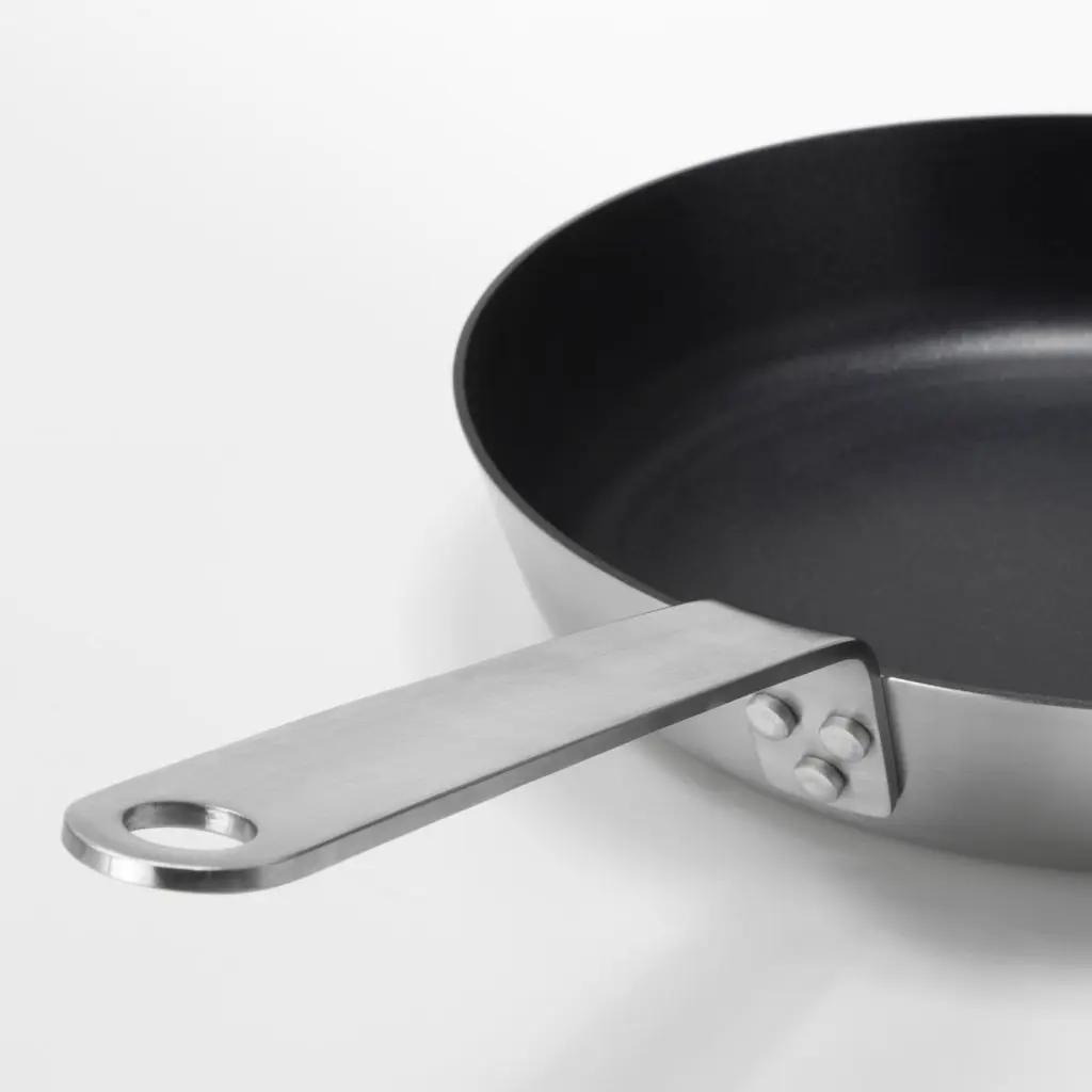 Бесплатно 5 лет гарантии. Подробнее об условиях гарантии – в гарантийной брошюре.Подходит для всех типов варочных панелей, включая индукционную.Благодаря прочному антипригарному покрытию Teflon® Professional посуда подходит для тех, кто любит готовить профессионально.Сковорода нагревается равномерно, т. к. ее дно и стенки сделаны из одинакового по толщине трехслойного материала, состоящего из слоя алюминия между двумя слоями нержавеющей стали.Сделано из нержавеющей стали. Прочный и простой в уходе материал.Посуда полностью изготовлена из металла, поэтому ее можно также использовать в духовке.Для получения оптимального результата при использовании посуды на индукционной панели ставьте посуду на индукционную зону, диаметр которой равен диаметру дна посуды.Ручка сковороды нагревается в процессе использования — обязательно пользуйтесь прихваткой, перемещая кухонную посуду или снимая крышку.Вымойте изделие перед первым использованием.Для создания антипригарной поверхности этого товара не используется ПФОК (перфтороктановая кислота).Дизайнер