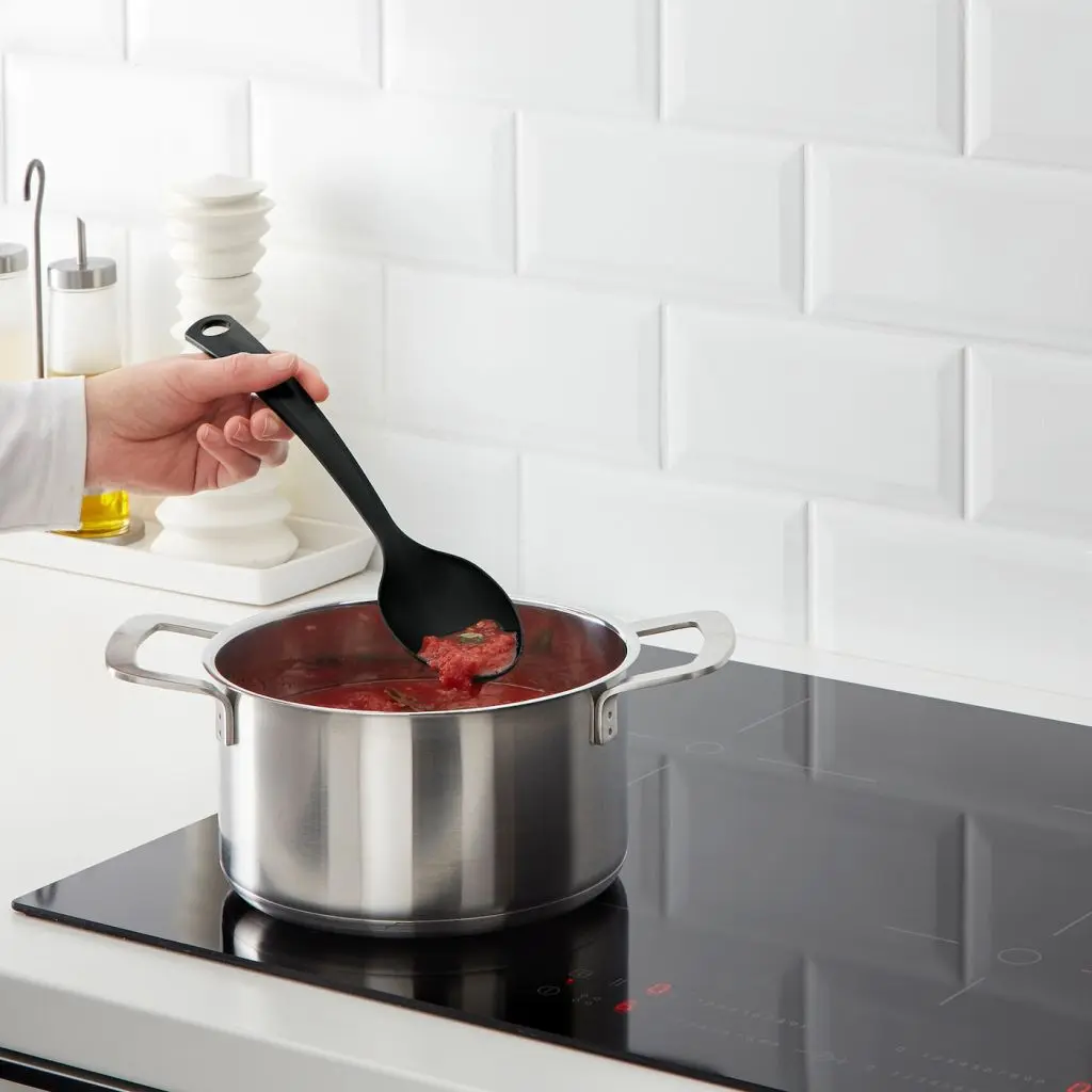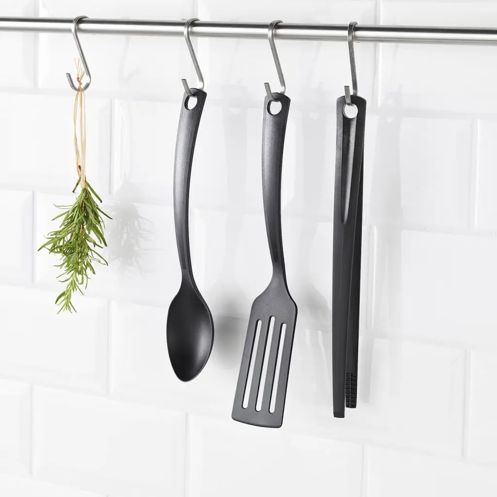Не повреждает антипригарное покрытие кастрюль и сковородок.В набор входит: кухонные щипцы 29 см, ложка 28 см и лопаточка 31 см.Вымойте изделие перед первым использованием.Дизайнер