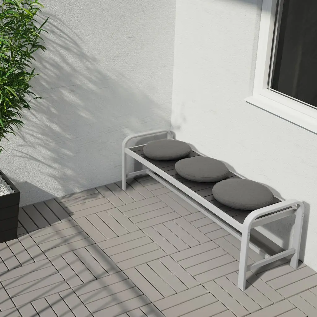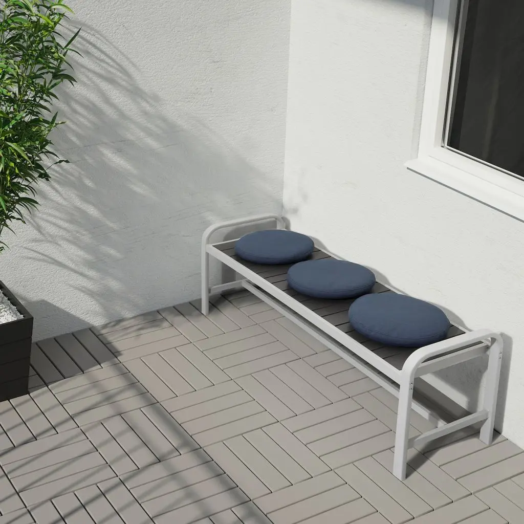 Сделайте скамью максимально комфортной, дополнив ее понравившейся подушкой.Материалы, из которых изготовлена эта садовая мебель, не требуют ухода.Легко поддерживать в чистоте – достаточно протереть влажной тканью.Прочная, легкая и простая в уходе мебель изготовлена из жаропрочного алюминия.На 2-3 человека.Можно дополнить подушкой на стул ФРЁСЁН/ДУВХОЛЬМЕН 35 см, 3 шт.Эта скамья разработана для домашнего (бытового) использования и соответствует требованиям к безопасности и прочности стандарта EN 581.Дизайнер