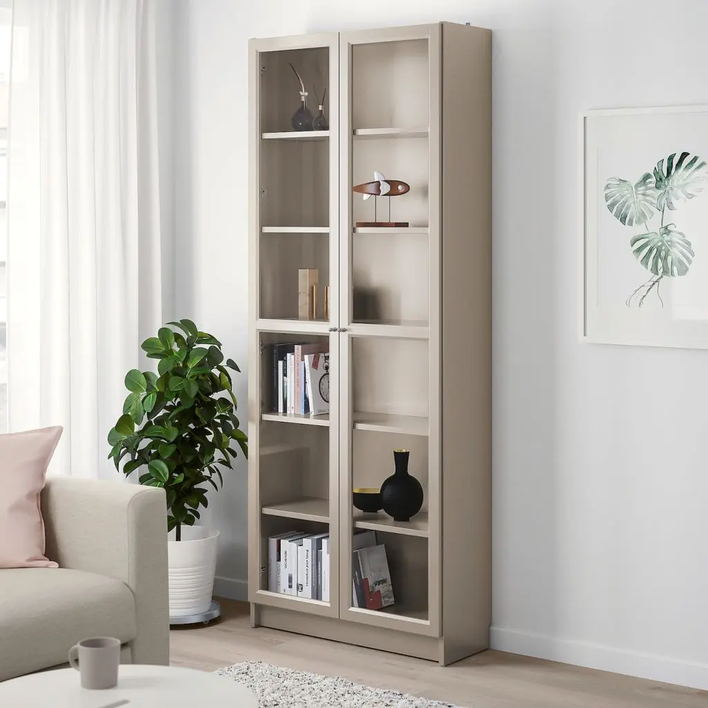 Стеклянные дверцы защищают любимые вещи от пыли.Модуль может использоваться для организации хранения в небольшом помещении или станет основой для большей комбинации, если Ваши потребности в хранении изменились.Съемные полки; устанавливайте на разном уровне в соответствии с необходимостью.5 полок прилагаются.Эту мебель необходимо крепить к стене с помощью прилагаемого стенного крепежа.Будьте осторожны при обращении со стеклом! Из-за поврежденных краев и царапин на поверхности стекло может внезапно треснуть и/или разбиться. Избегайте ударов сбоку, там стекло наиболее уязвимо.Для разных стен требуются различные крепежные приспособления. Подберите подходящие для ваших стен шурупы, дюбели, саморезы и т. п. (не прилагаются).Требуемая мин. высота потолка: 205 см.Дизайнер