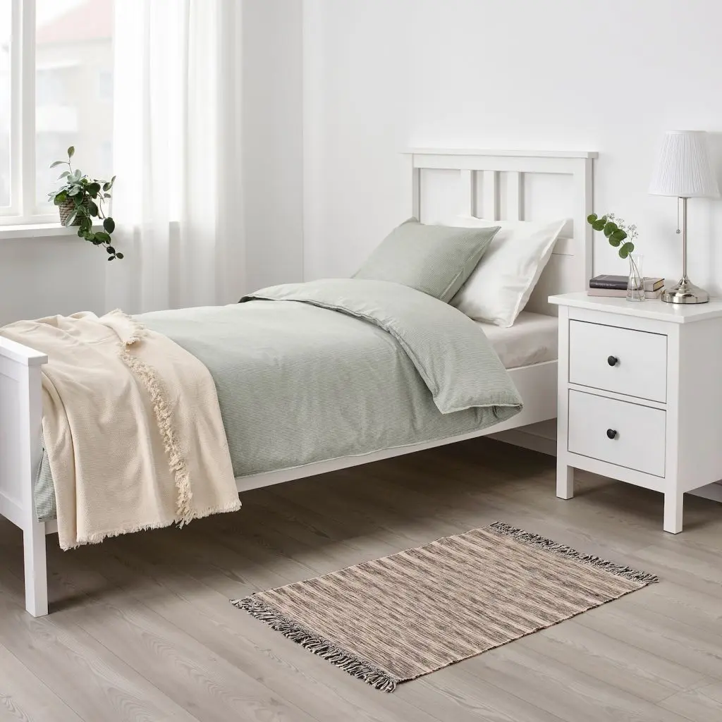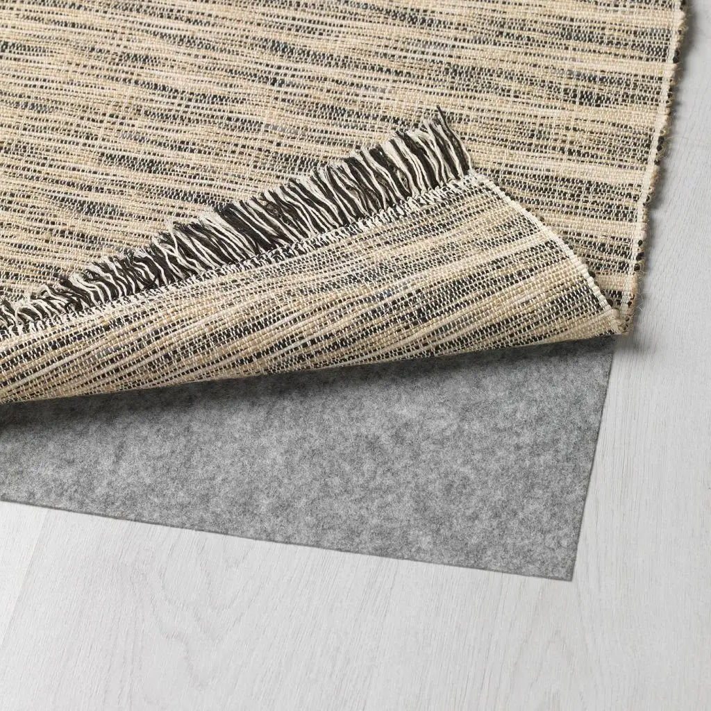 Двусторонний ковер можно переворачивать, это обеспечит его равномерный износ и продлит срок службы.Мягкий хлопок и прочный джут — отличная комбинация материалов для изготовления износостойкого ковра с приятной фактурой.Джутовая пряжа — натуральное волокно, толщина которого варьируется, что позволяет сделать поверхность ковра более выразительной.Всем новым материалам присущ специфический запах, который постепенно исчезнет. Проветривание и чистка пылесосом помогут устранить запах, характерный для нового ковра.Для этого ковра потребуется 1 противоскользящая подстилка СТОП ФИЛЬТ (165×235 см). При необходимости можно подрезать.Ковер машинной работы.Используйте противоскользящую подстилку СТОП ФИЛЬТ для обеспечения безопасности; подстилку следует класть под ковер.Дизайнер