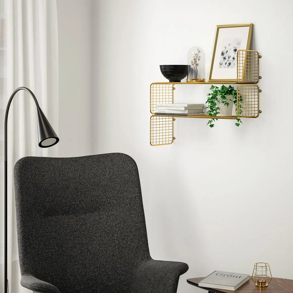 Создайте индивидуальное решение из нескольких полок.На сетчатую поверхность полки можно поставить кружки, книги и украшения.Полку можно закрепить по-разному, в зависимости от того, что вы планируете на ней разметить. Например, бортик с одной стороны может стать ограничитель для книг.Шурупы для крепления к стене не прилагаются.Для различных материалов стен требуются различные крепежные средства. Используйте крепежные средства, подходящие для материала стен в вашем доме.Если Вы не уверены, какой тип креплений использовать, обратитесь в специализированный магазин.Дизайнер