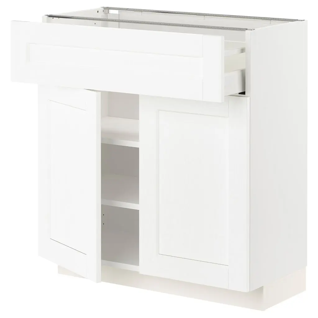 Навесной шкаф с дверцей/2 ящика, белый/Будбин белый с оттенком, 40x100 см