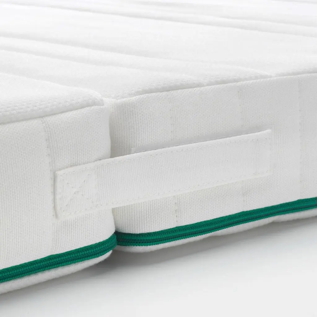 Чехол легко снять и постирать в машине при 60 °C.Независимые карманные пружины обеспечивают оптимальный комфорт, повторяя естественные изгибы тела и обеспечивая необходимую поддержку, чтобы ребенок хорошо отдохнул и выспался.Застежки-липучки надежно фиксируют дополнительные части матраса.Дополнительные части этого матраса можно хранить в прилагающейся сумке. Это защитит их от пыли и загрязнений, чтобы вы могли в любой момент их использовать.Защитный слой пенополиуретана и войлочная набивка для дополнительного комфорта.Прочный матрас можно использовать в течение длительного времени.Один матрас — три длины. С помощью двух дополнительных частей длину матраса можно увеличивать со 130 см до 165 и 200 см по мере роста ребенка.Подходит ко всем раздвижным кроватям из нашего ассортимента.Мы рекомендуем для детского матраса натяжные простыни ЛЕН из 100% хлопка.Для стирки чехол необходимо вывернуть наизнанку и застегнуть на молнию.Дополнительные секции легко добавить в изножье кровати по мере роста ребенка.Этот матрас состоит из трех частей, которые продаются в одной упаковке.Натяжная простыня ЛЕН представлена в двух вариантах размеров. Один размер подходит для матраса раздвижной кровати без дополнительных секций (80×130 см), второй — для матраса раздвижной кровати с 1 дополнительной секцией (80×160 см).Безопасная для детей молния, так как на ней нет «язычка». Молнию можно открыть и закрыть, вставив в бегунок канцелярскую скрепку. Не забудьте потом убрать скрепку.