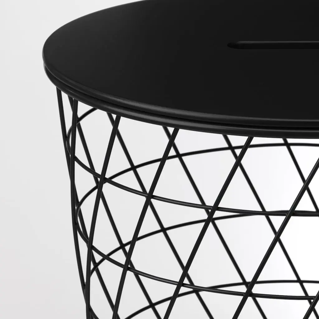 В корзине можно хранить подушку и плед или газеты и нитки для вязания. А если вам захочется подчеркнуть воздушность и легкость вашего интерьера, оставьте корзину пустой.Этот легкий столик можно без труда поднять и перенести, например, от дивана к вашему любимому креслу.Можно использовать в любой комнате дома как журнальный столик или прикроватную тумбу.Прочная металлическая проволока обеспечивает устойчивую опору для столешницы, кроме того, благодаря такой конструкции столик легко и удобно переносить.Благодаря ручке крышку-столешницу удобно открывать, чтобы достать вещи, хранящиеся в корзине.Дизайнер