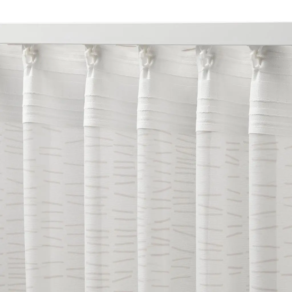 Гардины защищают от света с улицы и посторонних взглядов.Можно вешать на гардинный карниз или гардинную шину.Тесьма по верхнему краю позволяет делать складки, используя гардинные крючки РИКТИГ.На тесьме по верхнему краю гардин есть подготовленные петли, позволяющие повесить гардины на гардинный карниз.В комплект входит: 2 гардины.Указаны размеры одной гардины.С помощью клеевой тесьмы СИ можно укоротить гардины не подшивая их.Дизайнер