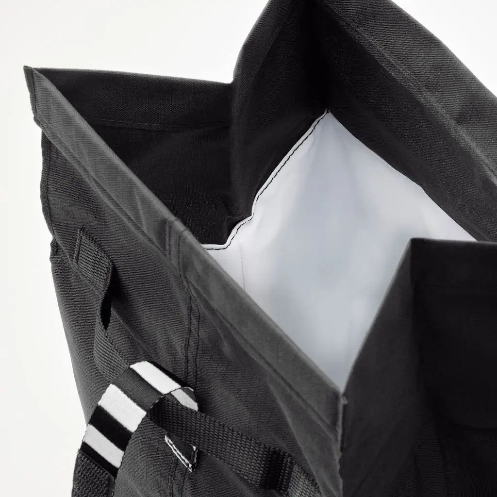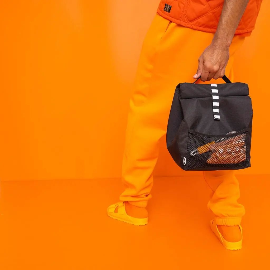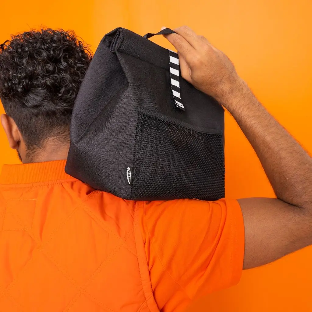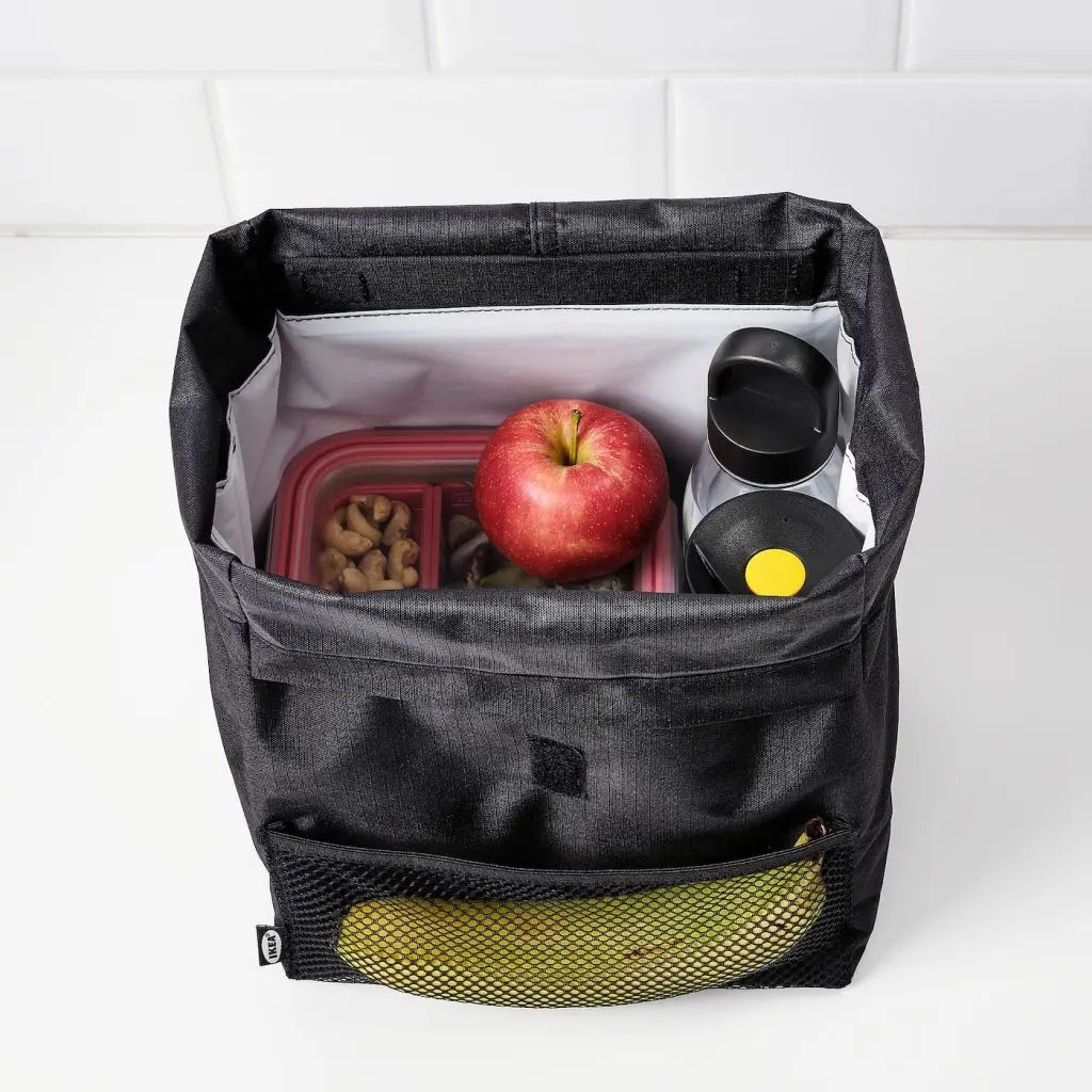 Эта компактная черная сумка для завтраков удобна в любой в ситуации благодаря лаконичному дизайну и продуманным деталям: теплоизолирующему внутреннему слою, чтобы еда дольше оставалась теплой, водонепроницаемому материалу и карману для столовых приборов.