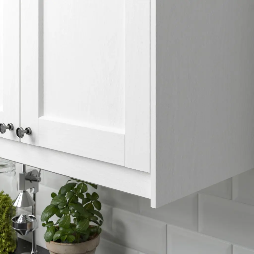 Классическая белая отделка смотрится элегантно и выдержит испытание временем. Фасады ЭНЧЁПИНГ ламинированы прочной пленкой, имитирующей естественный рисунок древесины, что делает кухню особенно уютной.