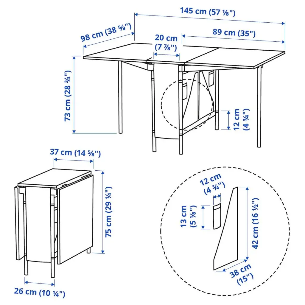 2 откидные столешницы позволяют регулировать размер стола для 2–4 человек.