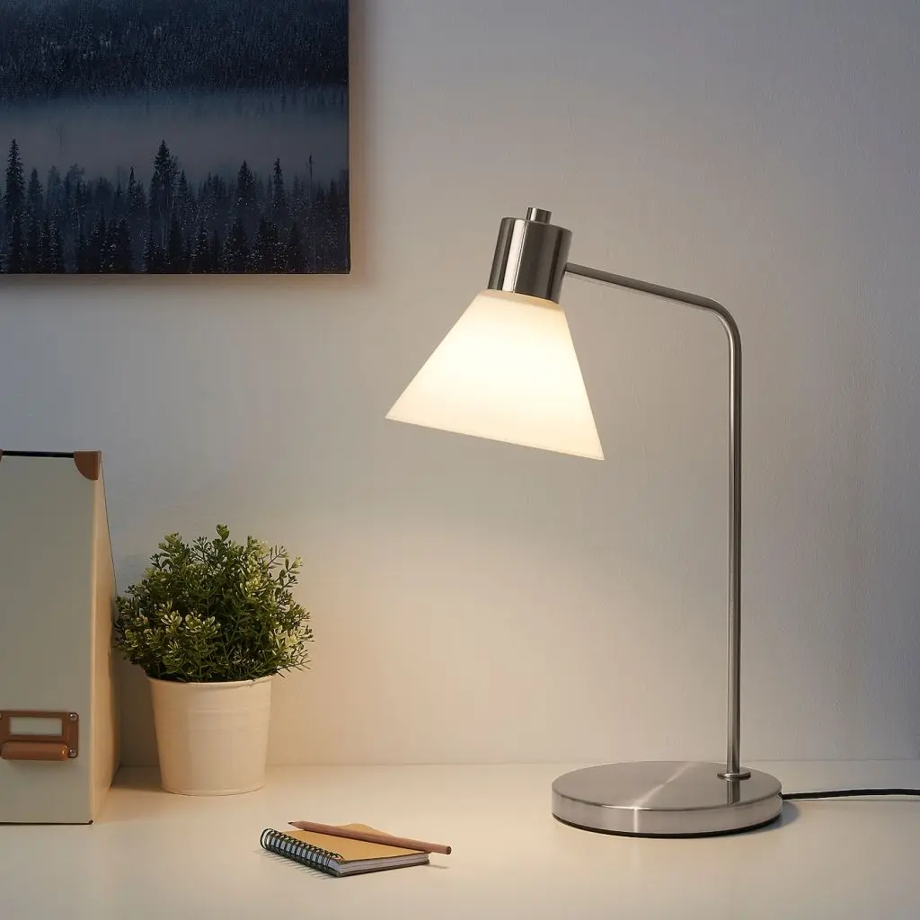 Эта настольная лампа с абажуром из выдувного стекла подходит для большинства интерьерных стилей и создает мягкое приятное освещение.