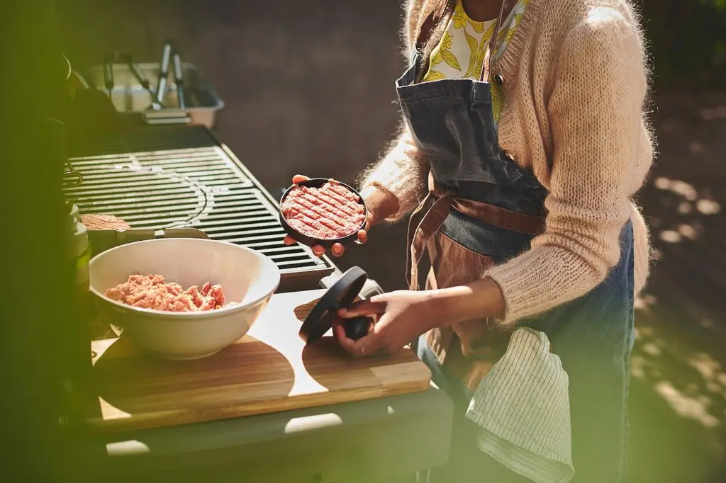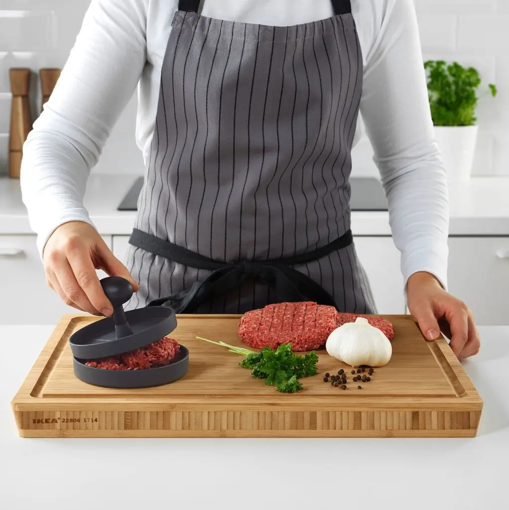 Рельефная поверхность пресса придает котлете аппетитный вид, как будто она приготовлена на гриле.