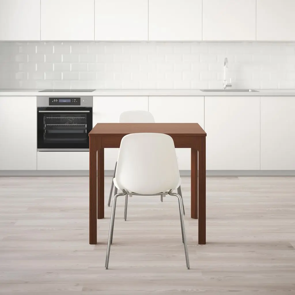 Каждый стол уникален – благодаря естественному рисунку натуральной древесины и вариативности ее оттенков.1 человек может легко и быстро разложить стол перед приходом гостей.Когда стол не разложен, на поверхности столешницы нет никаких швов.Вкладную доску удобно хранить под столешницей.Ножки всегда находятся по углам стола, даже когда он раздвинут, что обеспечивает достаточно места для стульев.Можно дополнить стульями и скамьями этой серии или другими стульями из ассортимента ИКЕА.Дизайнер