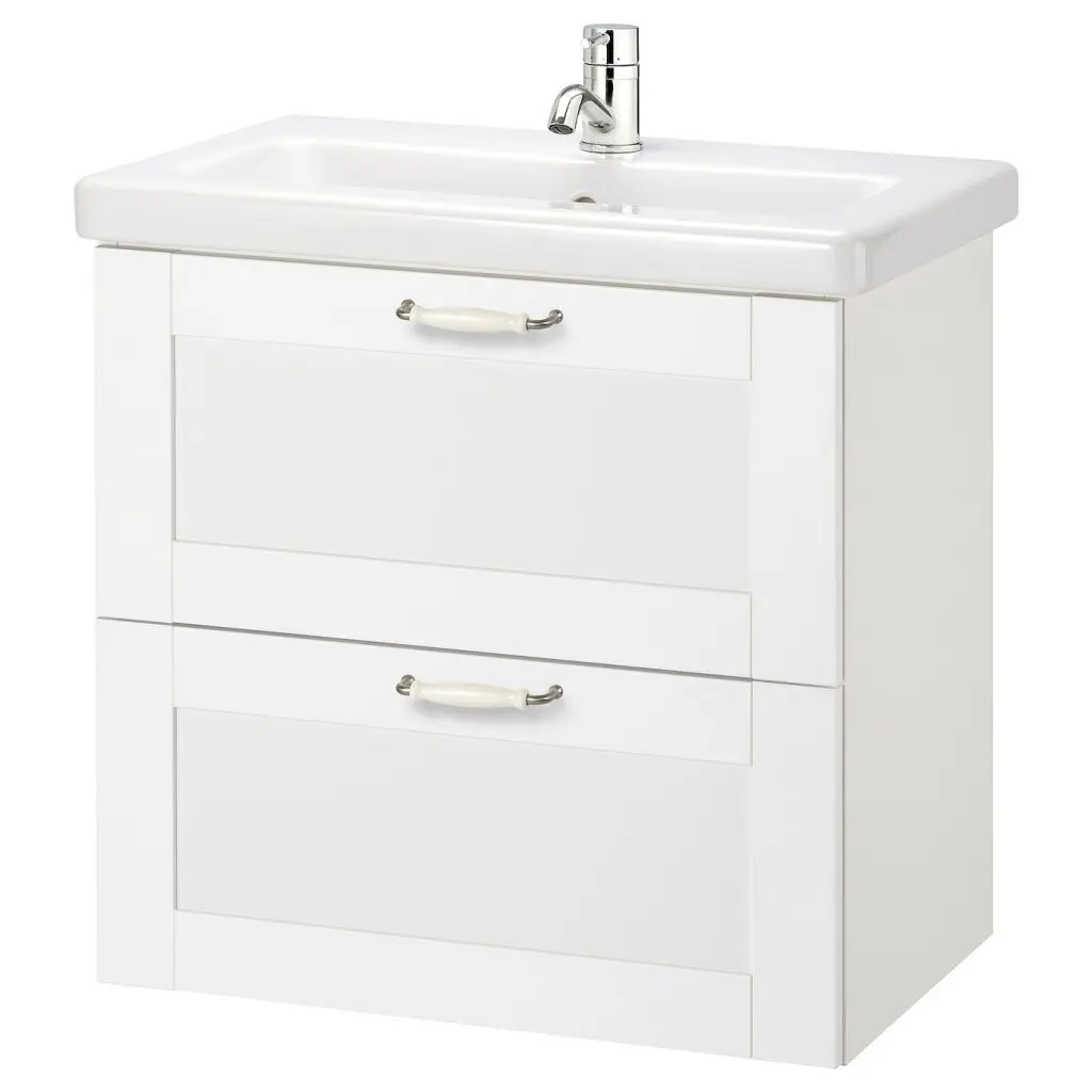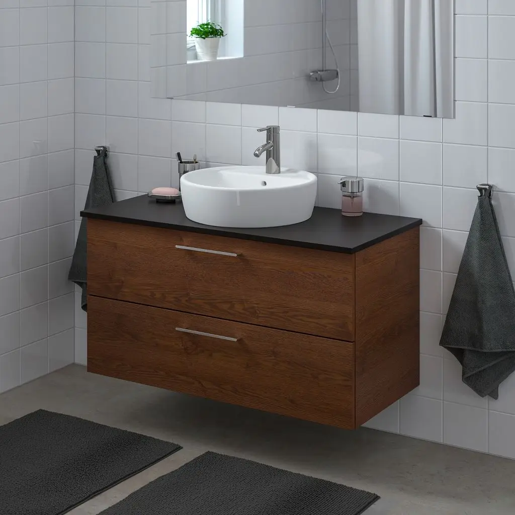 Бесплатно 10 лет гарантии. Подробнее об условиях гарантии – в гарантийной брошюре.Ламинированные столешницы отличает высокая прочность, простота в уходе и долговечность.Раковину можно установить справа, слева или посередине.Ящики с плавным ходом и стопором закрываются плавно.Размер отделений можно регулировать, передвигая разделитель.Ящики выдвигаются полностью, обеспечивая удобный обзор и доступ к содержимому.Ящики изготовлены из массива дерева, дно изготовлено из устойчивого к повреждениям меламина.Прилагаемый сифон легко подсоединить к сливной трубе, стиральной машине и сушильной машине.Конструкция сифона позволяет разместить полноразмерный ящик.Накладная раковина придает ванной законченный индивидуальный облик.Ножки ГОДМОРГОН продаются отдельно.Обратите, пожалуйста, внимание, что для установки раковины в столешницу вам потребуются силиконовый уплотнитель и лобзик (продаются отдельно).Ручки прилагаются.Выпуск и сифон прилагаются.Смеситель прилагается.Используйте прилагающийся шаблон для установки раковины на столешницу.Для сборки этой мебели требуются два человека.Убедитесь, что материалы, из которых сделаны стены ванной комнаты, выдержат вес мебели. Если у вас возникли сомнения по поводу установки, обратитесь к специалисту. Для разных стен требуются различные шурупы, дюбели, саморезы и т. п. (не прилагаются).Эту мебель необходимо крепить к стене с помощью прилагаемого стенного крепежа.Если вы сомневаетесь в прочности стен в ванной, мы рекомендуем использовать ножки.Раковина устойчива к воздействию большинства химикатов, за исключением сильных кислот и сильных щелочей.Дизайнер