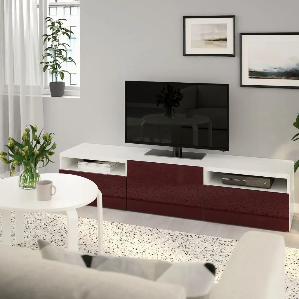 Благодаря доводчикам ящики закрываются плавно и бесшумно.Благодаря нескольким отверстиям на задней панели тумбы под ТВ провода от телевизора и других устройств всегда будут под рукой, но не на виду.Два ящика обеспечат порядок в хранении пультов, игровых приставок и других аксессуаров для ТВ.Специальное отверстие для проводов в верхней панели обеспечит удобное и компактное размещение проводов, даже если тумба закреплена на стене.Эту мебель необходимо крепить к стене с помощью прилагаемого стенного крепежа.Макс. нагрузка на верхнюю панель этой тумбы под ТВ: 50 кг.Для разных стен требуются различные крепежные приспособления. Подберите подходящие для ваших стен шурупы, дюбели, саморезы и т. п. (не прилагаются).Максимальная нагрузка на закрепленный на стене модуль зависит от материала стены.Внутренние элементы для организации хранения в модулях БЕСТО продаются отдельно.Если вы выберете функцию плавного закрывания, рекомендуем дополнить фасады ручками, чтобы открывать ящики/шкафы было удобнее.Дизайнер