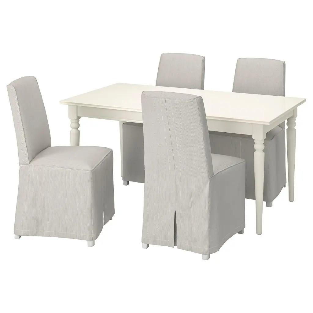 Стол и 4 стула, белый/колбуда бежевый/темно-серый, 155/215 см