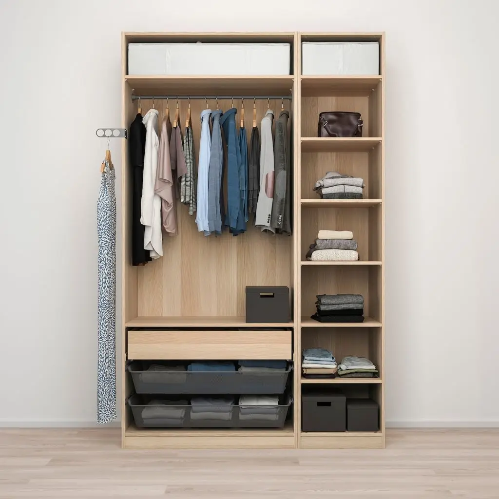 Бесплатно 10 лет гарантии. Подробнее об условиях гарантии – в гарантийной брошюре.Эту комбинацию ПАКС/КОМПЛИМЕНТ можно адаптировать в соответствии с вашими потребностями, воспользовавшись программой для проектирования гардеробов ПАКС.Регулируемые ножки позволяют скорректировать неровности пола.Благодаря петлям с интегрированным доводчиком дверцы закрываются плавно и бесшумно.С помощью программы планирования гардероба ПАКС вы можете легко дополнить свою комбинацию интегрированной подсветкой. После выбора источника освещения программа предложит необходимые аксессуары.Сетчатый материал обеспечивает циркуляцию воздуха. Корзина подходит для хранения сложенной одежды и различных аксессуаров.Эту мебель необходимо крепить к стене с помощью прилагаемого стенного крепежа.Для разных стен требуются различные крепежные приспособления. Подберите подходящие для ваших стен шурупы, дюбели, саморезы и т. п. (не прилагаются).Для сборки этой мебели требуются два человека.Требуемая мин. высота потолка: 245 см. Следуйте инструкциям по сборке в упаковке.Для этого товара необходимы петли. Петли включены в стоимость, но продаются в отдельной упаковке.Аксессуары для организации хранения в гардеробе продаются отдельно.Ручки продаются отдельно.Дизайнер