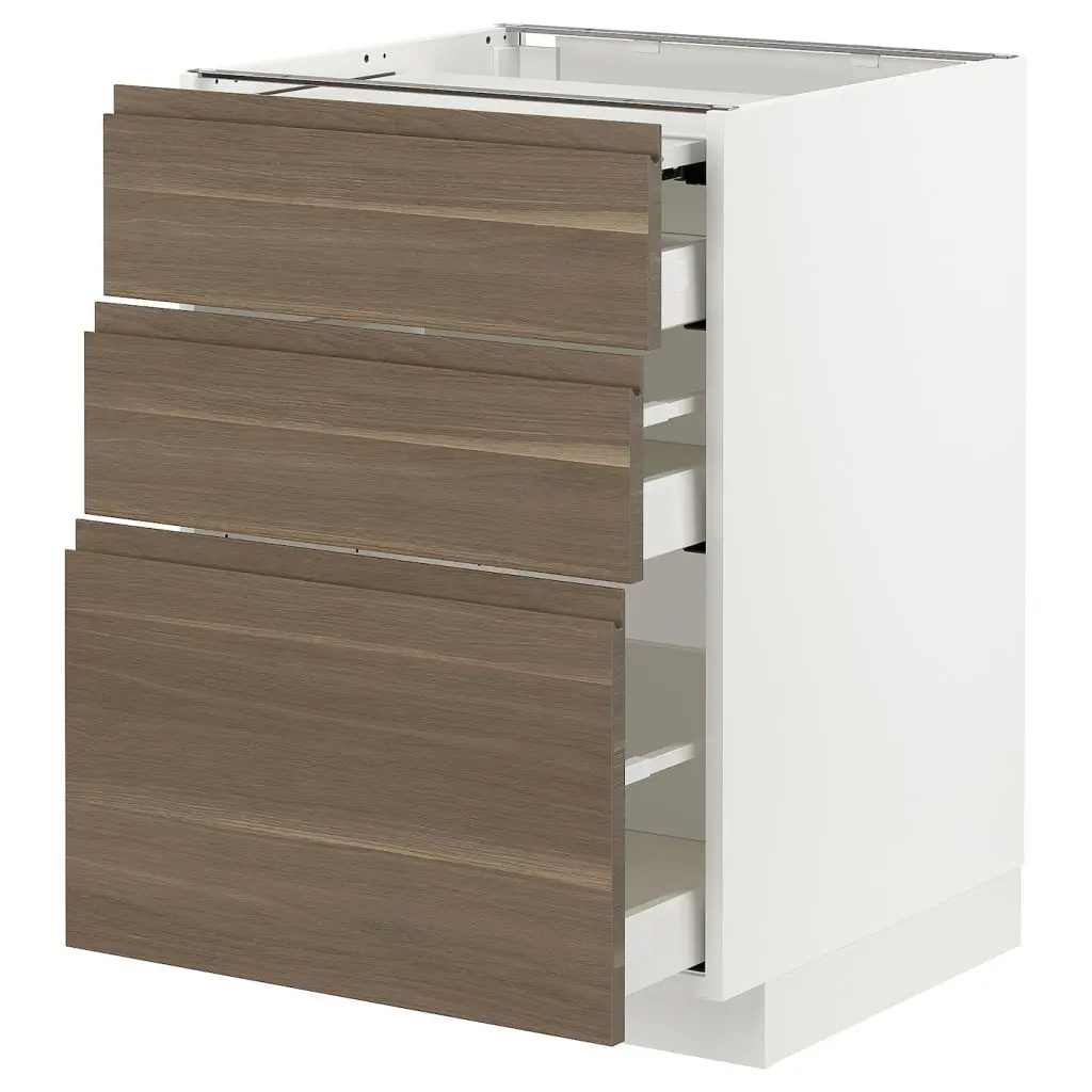 Код кухонного шкафа ME/MA 541Ящики МАКСИМЕРА с плавным ходом выдвигаются полностью. Благодаря доводчикам закрываются медленно, плавно и бесшумно.Съемная полка – организуйте место для хранения в соответствии с вашими потребностями.Дверцу можно установить справа или слева.Каркас имеет устойчивую конструкцию благодаря стенкам из ДСП толщиной 18 мм.Защелкивающиеся петли устанавливаются на дверцу без шурупов, поэтому дверцу легко снять и помыть.Для разных стен требуются различные крепежные приспособления. Подберите подходящие для ваших стен шурупы, дюбели, саморезы и т. п. (не прилагаются).Петли регулируются по высоте, глубине и ширине.Ножки и цоколи продаются отдельно.Можно дополнить ручкой.