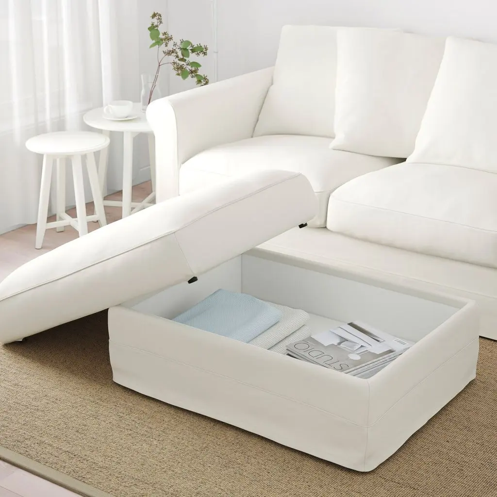 На него удобно ставить ноги или использовать как дополнительный табурет, а в практичном отделении под сиденьем можно хранить вещи.