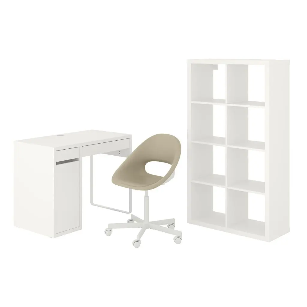 Стол и комбинация для хранения, и рабочий стул белый/бежевый,