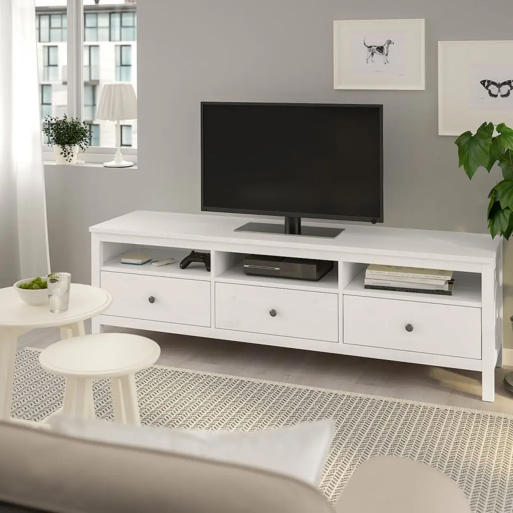 Тумба для телевизора ХЕМНЭС — это гармоничное сочетание натурального дерева и актуальной функциональности. Большие ящики для игр, пультов управления и аксессуаров. Кабель-канал в задней панели для аккуратного размещения кабеля.