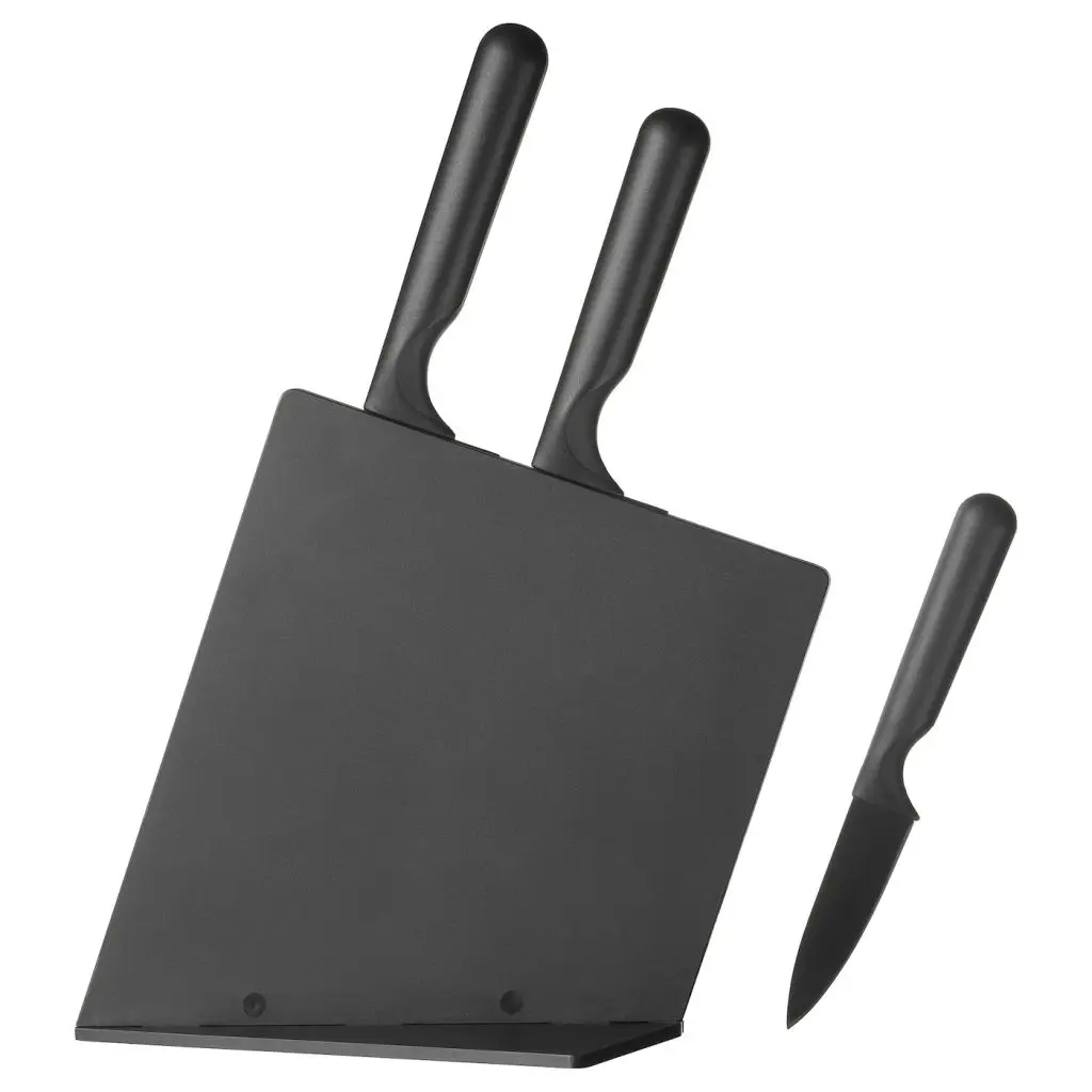 Благодаря керамическому покрытию нож легко мыть, а пища не прилипает к лезвию в процессе нарезания.Благодаря покрытию из искусственного каучука нож удобно держать в руке, рукоятка не скользит.Прилагающаяся подставка обеспечит правильное хранение ножей и защитит лезвие от повреждений, чтобы ножи дольше оставались острыми.В набор входит: поварской нож 19 см (общ. длина 33 см), поварской нож 15 см (общ. длина 28 см), нож для корнеплодов 8 см (общ. длина 19 см) и подставка для ножей.Вымойте изделие перед первым использованием.Дизайнер