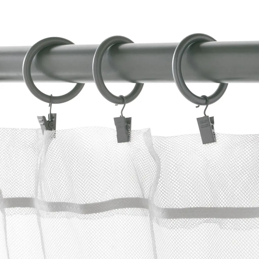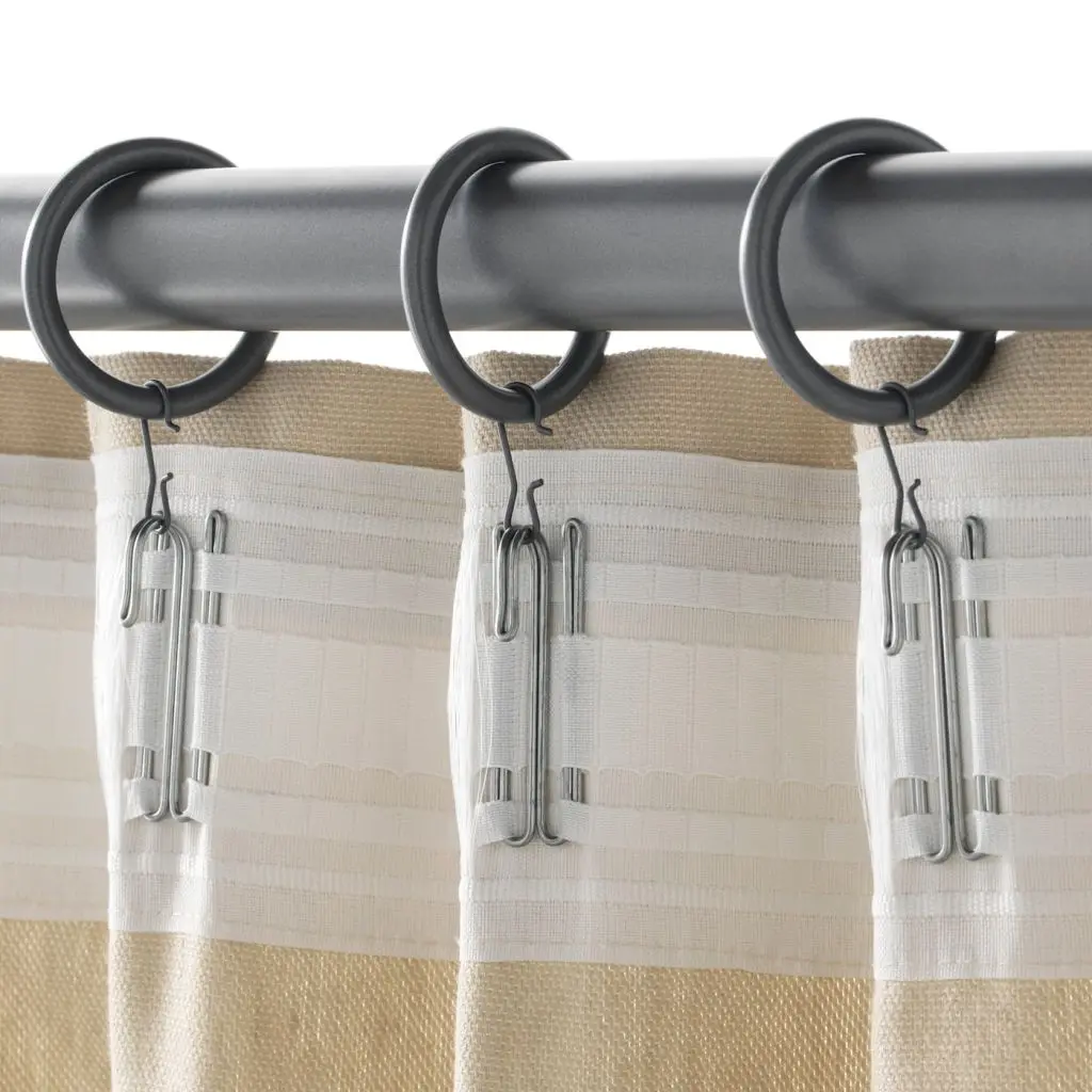 Повесьте гардины, используя кольца с зажимами или кольца с крючками.В набор входит: 10 колец (диам. 38 мм), 10 зажимов с крючками и 10 крючков.Гардинные крючки РИКТИГ продаются отдельно. Дизайнер