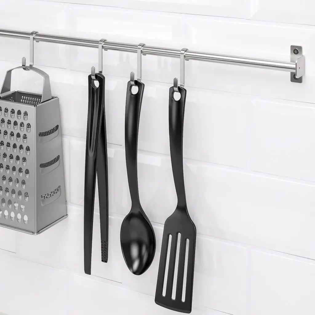 Можно закрепить непосредственно на стене или использовать накладную шину КУНГСФОРС.Экономит место на столе.Также можно использовать как штангу для полотенец или подставку для крышек.Вы можете освободить место на столешнице, повесив аксессуары на рейтинг.Также можно использовать в помещениях с высокой влажностью.Для разных стен требуются различные крепежные приспособления. Подберите подходящие для ваших стен шурупы, дюбели, саморезы и т. п. (не прилагаются).Различные материалы стен выдерживают разную нагрузку. Например, гипсокартон не может выдерживать вес, который могут выдержать стены из дерева, бетона или кирпича.Если Вы не уверены, какой тип креплений использовать, обратитесь в специализированный магазин.Можно закрепить непосредственно на стене или использовать накладную шину КУНГСФОРС.Для крепления к стене используйте прилагающиеся консоли.Можно комбинировать с другими товарами серии КУНГСФОРС.Рекомендуется использовать только в помещении.Дизайнер
