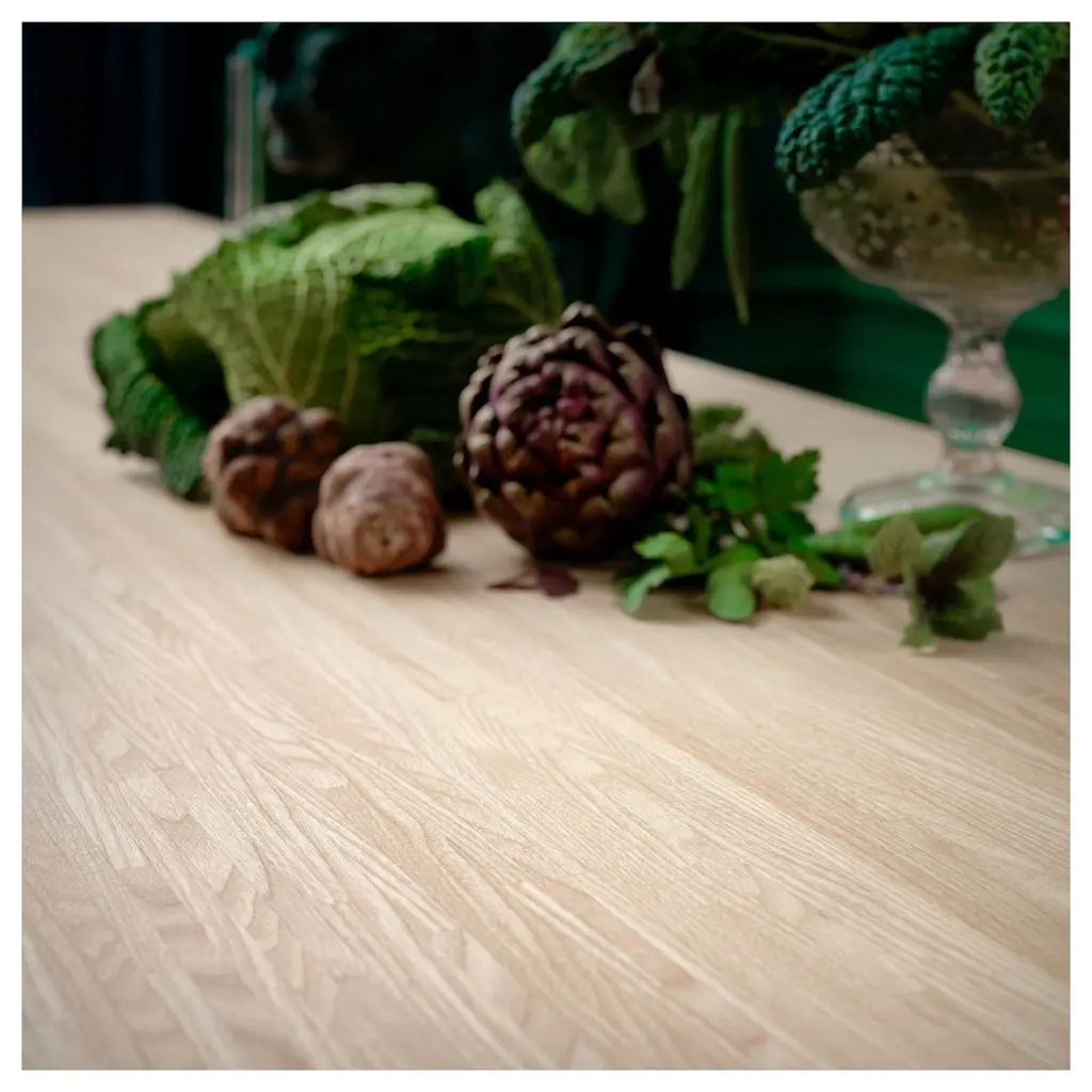 Конструкция столешницы обеспечивает ее прочность и устойчивость к воздействию влаги с меньшей вероятностью деформации и появления трещин, чем у массива древесины.Столешница готова к установке и проста в уходе, так как на производстве она обработана парафиновым маслом.Лаконичный дизайн придает столешнице актуальный облик, отделка напоминает современные виды напольного покрытия.Столешницу можно укоротить до нужной длины. 2 окантовки, чтобы закрыть срезы, прилагаются.Экологичное решение, обеспечивающее экономию природных ресурсов: столешница изготовлена из ДСП с верхним слоем из дерева.Бесплатно 25 лет гарантии. Подробнее об условиях гарантии – в гарантийной брошюре.Ясень — это прочная древесина с выразительным рисунком. Со временем поверхность приобретает насыщенный соломенный цвет.Нельзя использовать во влажных помещениях.Дизайнер
