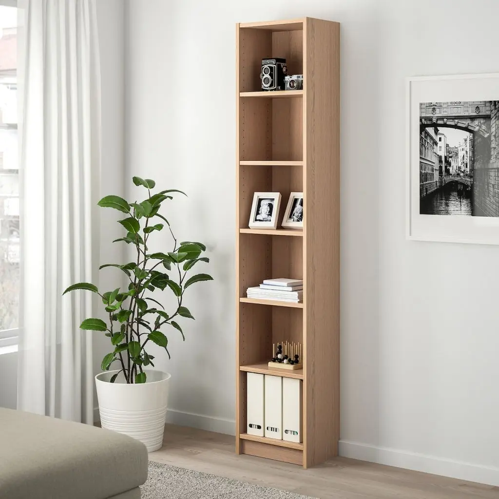 Узкие полки помогут эффективно использовать небольшое пространство стены.Съемные полки; устанавливайте на разном уровне в соответствии с необходимостью.Модуль может использоваться для организации хранения в небольшом помещении или станет основой для большей комбинации, если Ваши потребности в хранении изменились.Отделка из шпона. Эту мебель необходимо крепить к стене с помощью прилагаемого стенного крепежа.Для разных стен требуются различные крепежные приспособления. Подберите подходящие для ваших стен шурупы, дюбели, саморезы и т. п. (не прилагаются).Требуемая мин. высота потолка: 205 см.1 несъемная и 4 съемные полки прилагаются.Можно дополнить угловым креплением БИЛЛИ, чтобы построить удобный угловой модуль.Для расширения площади хранения дополните верхней полкой БИЛЛИ такой же ширины.Можно дополнить дверцами; имеются разные цвета и дизайны.Дизайнер