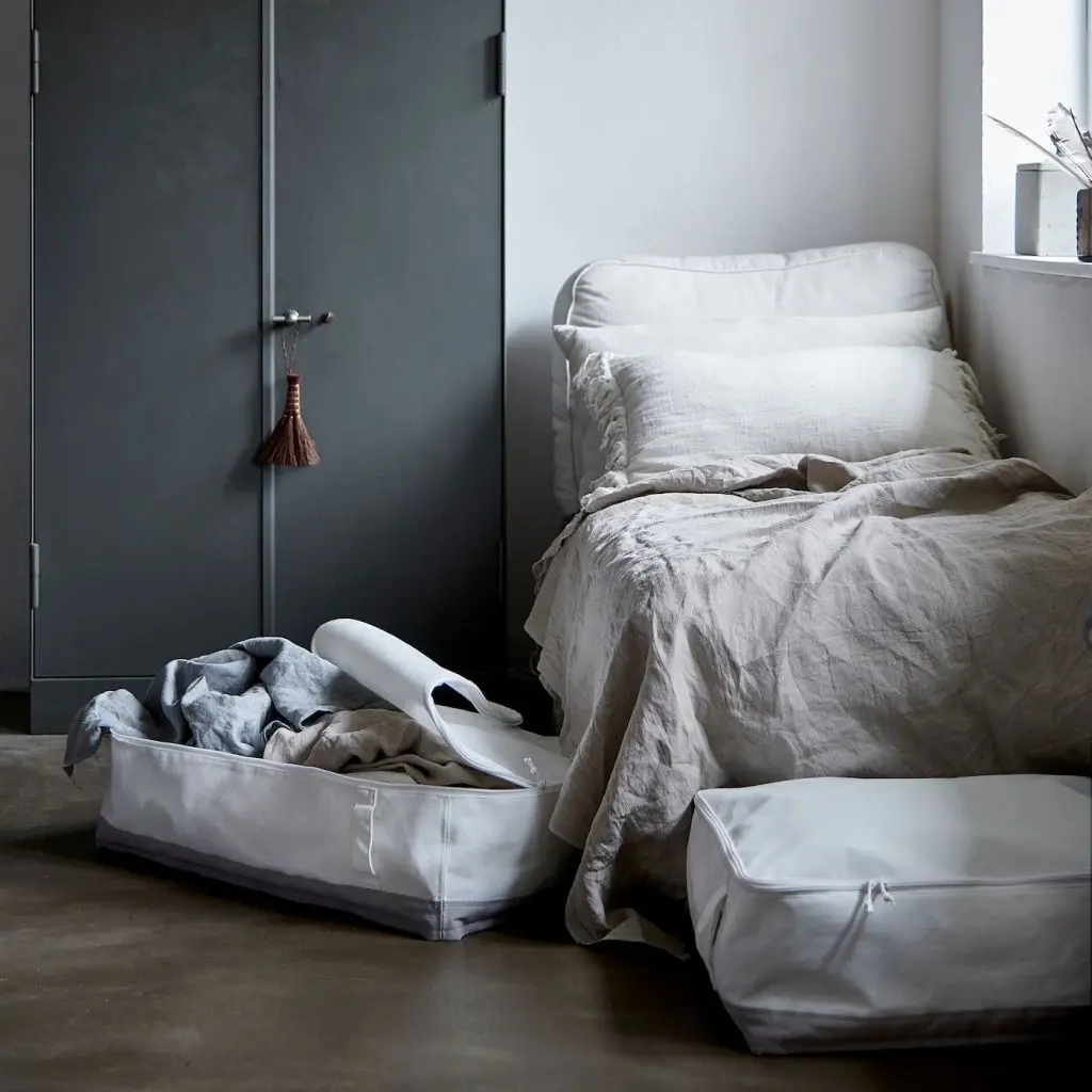 Материал пропускает воздух, поэтому одежда и другие вещи дольше остаются свежими.Легко выдвигать и поднимать благодаря ручкам.Можно сложить, что обеспечивает компактное хранение.Дизайнер