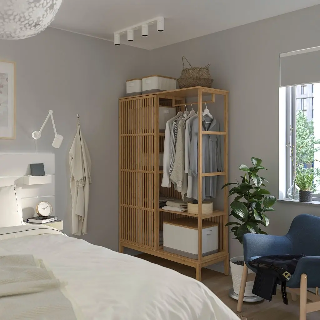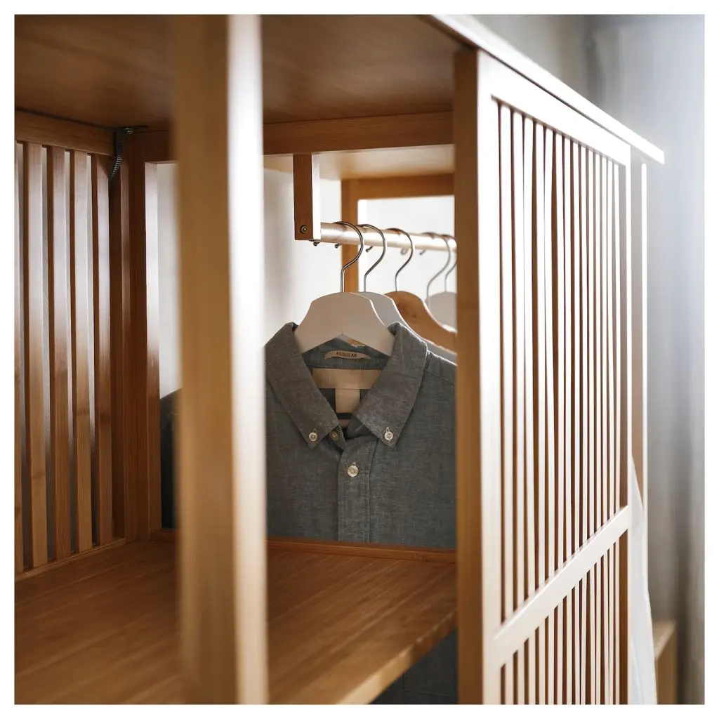 В этом гардеробе сочетаются лаконичные линии скандинавского дизайна и восточные традиции. Здесь удобно хранить одежду и другие вещи.