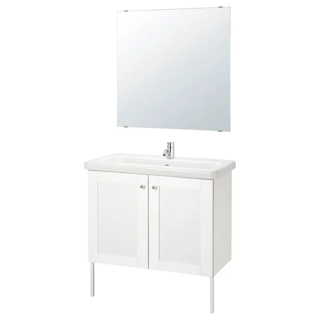 В этом высоком шкафу поместятся все необходимые вещи, а сам он почти не займет места на полу. Дверцу можно навесить справа или слева — в зависимости от ваших предпочтений или расположения другой мебели в ванной.