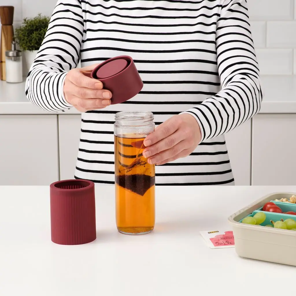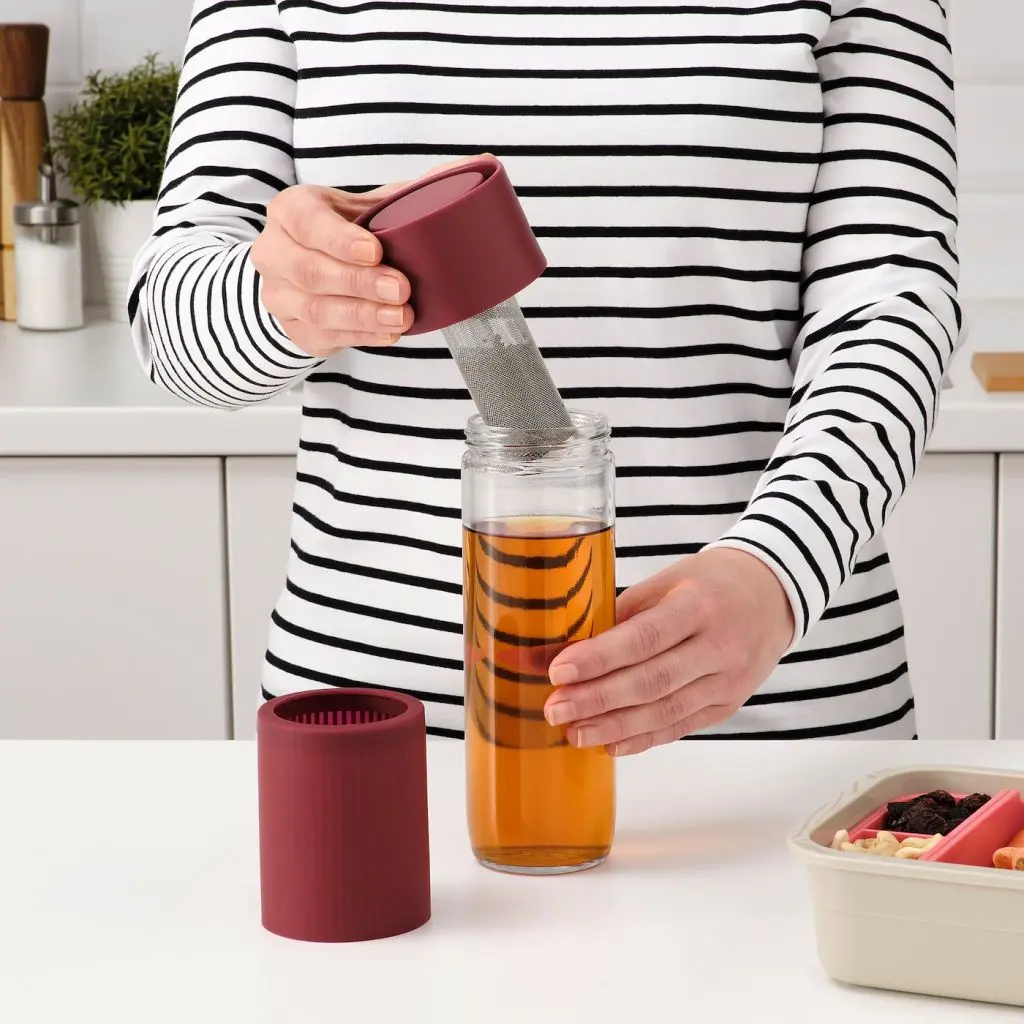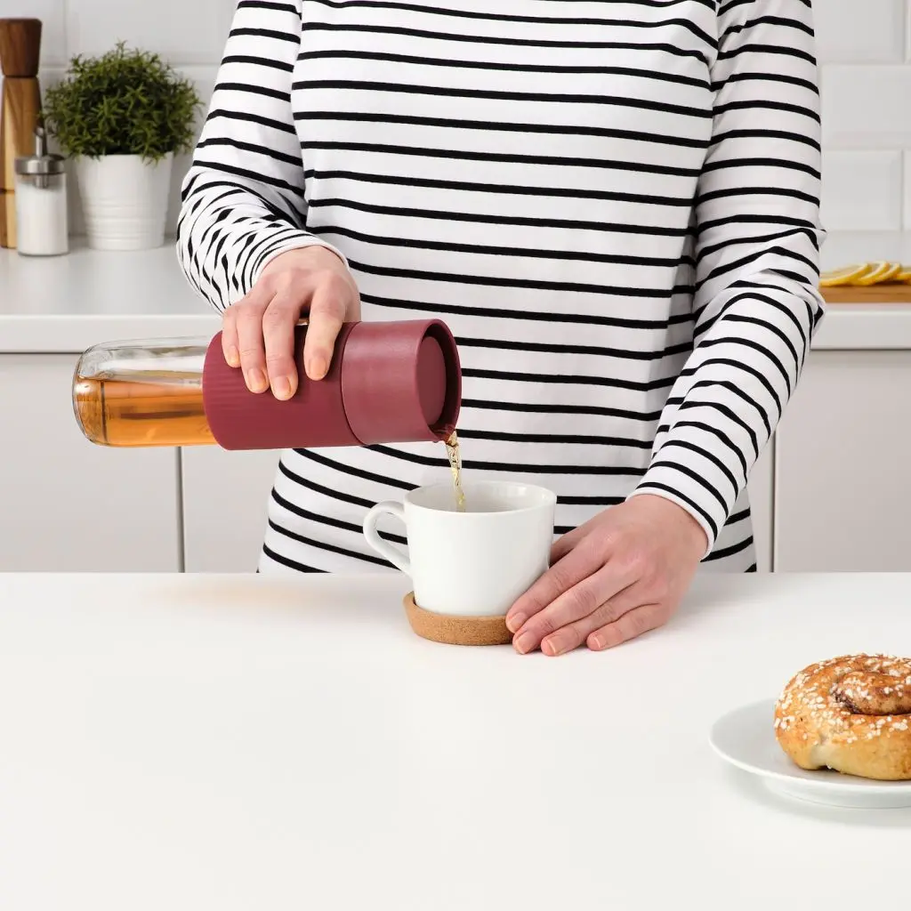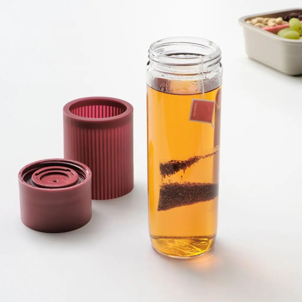 Герметичная дорожная кружка с фильтром из нержавеющей стали, который легко установить и снять.Силиконовый чехол защищает руки от горячего стекла.Просто нажмите на крышку, чтобы открыть ее одной рукой.Подходит для большинства автомобильных держателей кружек.Будьте осторожны при обращении с закаленным стеклом! Из-за поврежденных краев и царапин на поверхности стекло может внезапно разбиться.Будьте осторожны, когда пьете горячий напиток непосредственно из кружки.Не наливайте в кружку газированные напитки. Давление внутри может увеличиться и выбить крышку. Это также может произойти со сладким напитком при нагревании в связи с началом процесса брожения.Вымойте изделие перед первым использованием.Из жаропрочного стекла; для горячих и холодных напитков.Мойте вручную с добавлением соды или моющего средства.Дизайнер