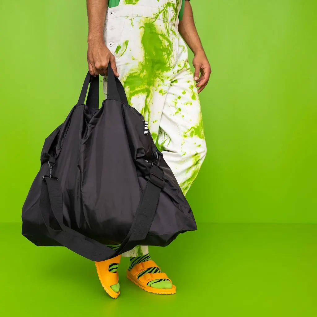 Лишняя сумка никогда не помешает. Эта вместительная сумка сделана из прочной влагоотталкивающей ткани, изготовленной из переработанного полиэстера. Можно нести в руке — или закрепить на чемодане. Чехол можно использовать для мелочей.