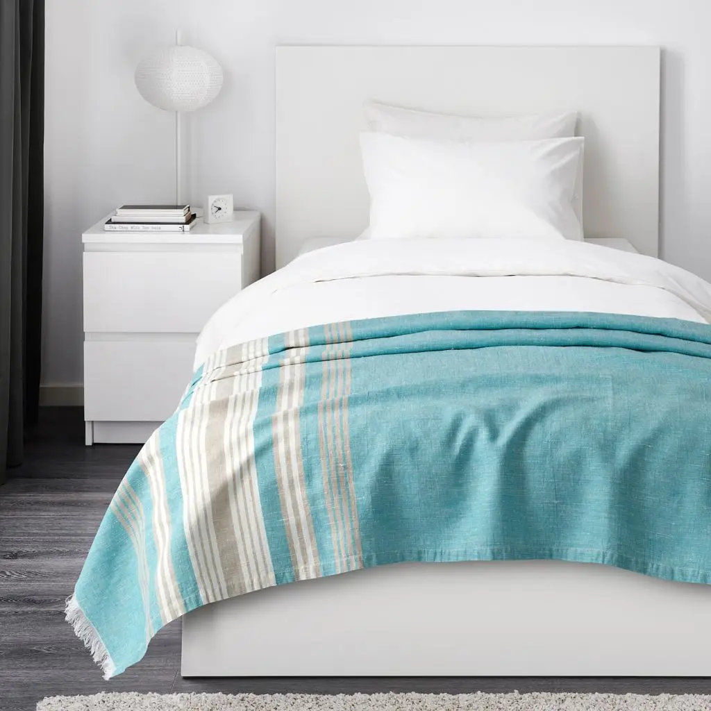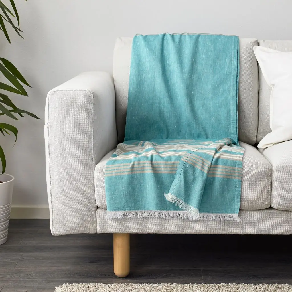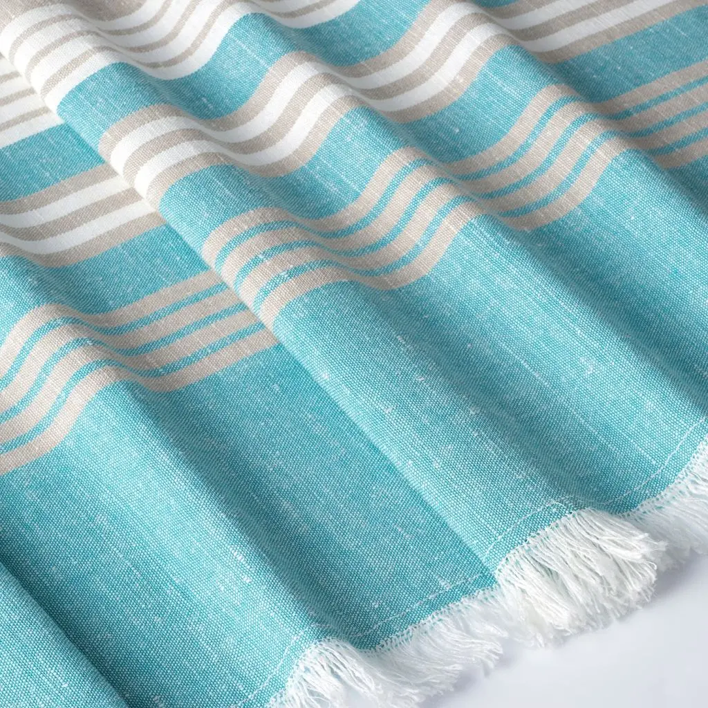Плед, в полоску, бирюзовый, 130x170 см