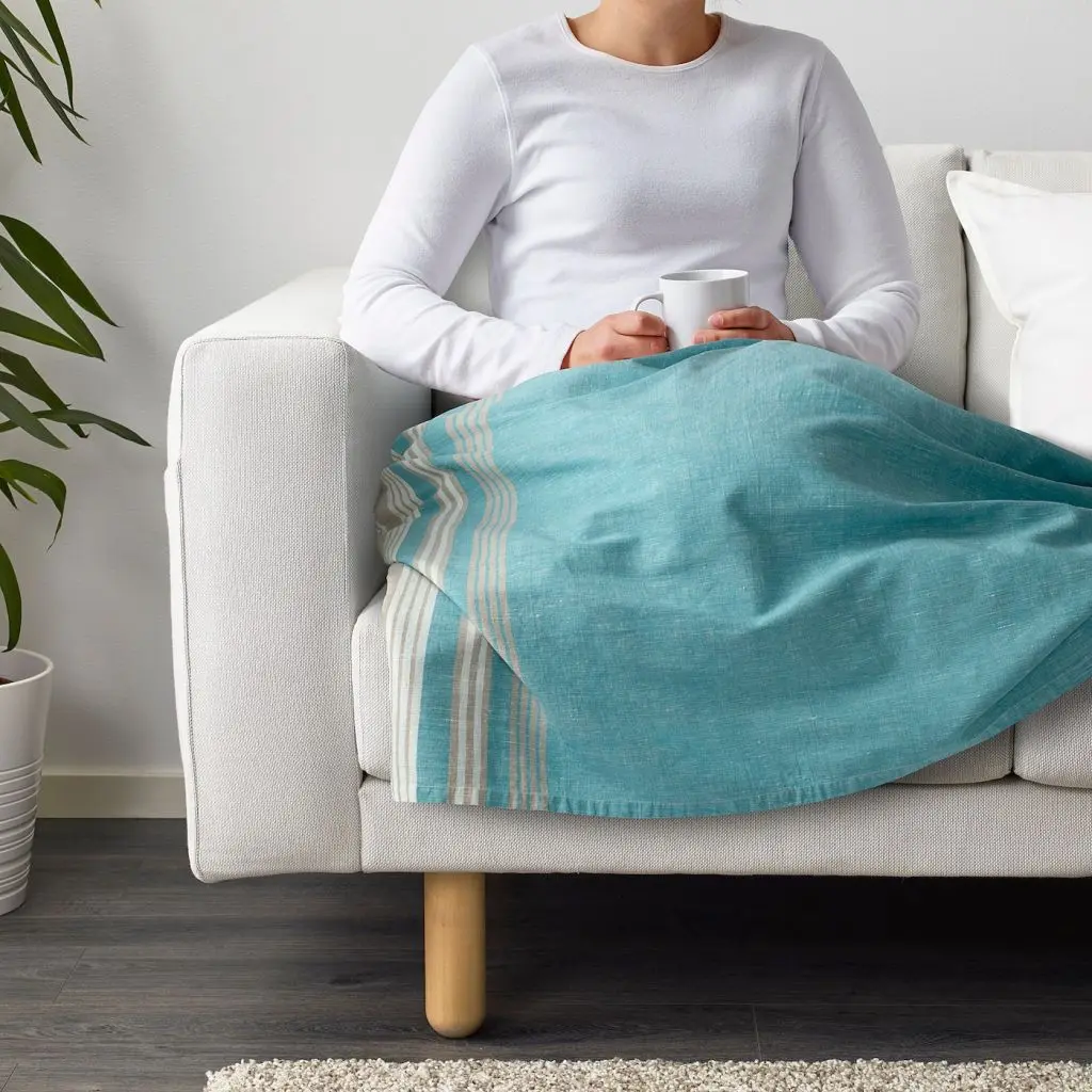 В этот большой уютный плед можно укутаться с головы до ног. Мягкая и приятная на ощупь ткань из хлопка и льна не подвергалась отбеливанию и окрашиванию и сохранила естественный цвет этих возобновляемых материалов. Можно также использовать как покрывало.