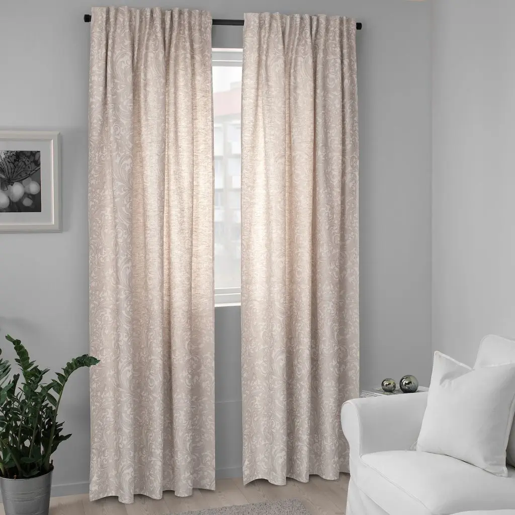 Лен — прочный натуральный материал, который прослужит долгие годы, сохранив первоначальный вид. Льняная ткань обладает естественной защитой от пятен и со временем становится мягче.Хлопок – натуральный материал. Ткань из хлопка проста в уходе, ее можно стирать в стиральной машине.Гардины можно вешать на гардинный карниз или гардинную шину.Тесьма по верхнему краю позволяет делать складки на гардинах, используя гардинные крючки РИКТИГ.Гардины можно вешать, пропустив карниз через потайные петли, или с помощью колец и крючков.В комплект входит: 2 гардины.Указаны размеры одной гардины.С помощью клеевой тесьмы СИ можно укоротить гардины не подшивая их.