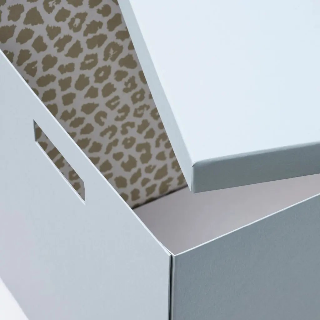 Эта большая коробка прекрасна как снаружи, так и внутри. В нее поместится много вещей, ее легко поднимать и переносить — и для ее производства используется в основном переработанная бумага, что позволяет экономить ресурсы планеты.