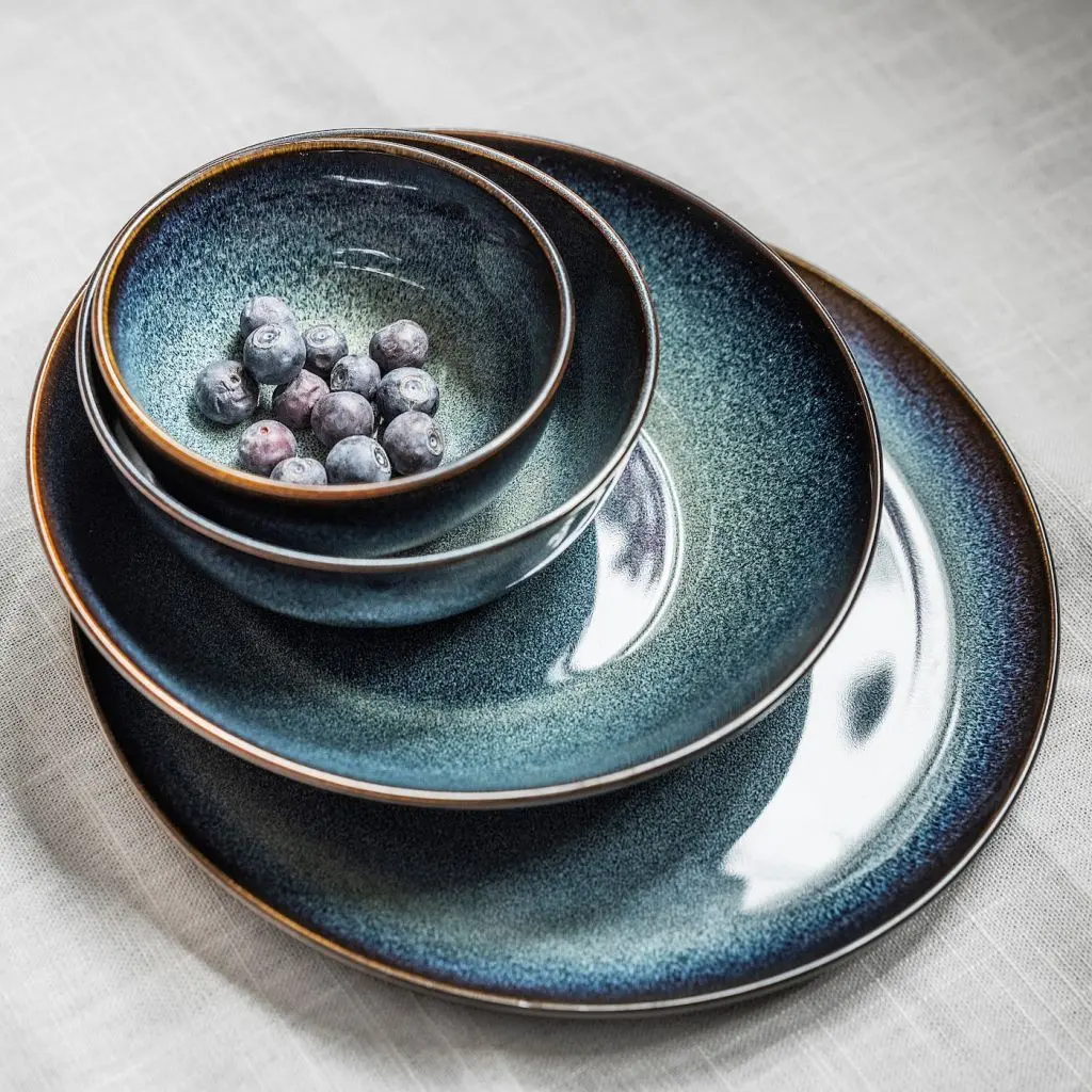 Глазурованная глубокая тарелка насыщенного синего цвета с золотисто-коричневым ободком станет достойной оправой для ваших кулинарных шедевров. Поставьте на стол эту простую лаконичную посуду, и вы получите красивую сервировку в традиционном стиле.