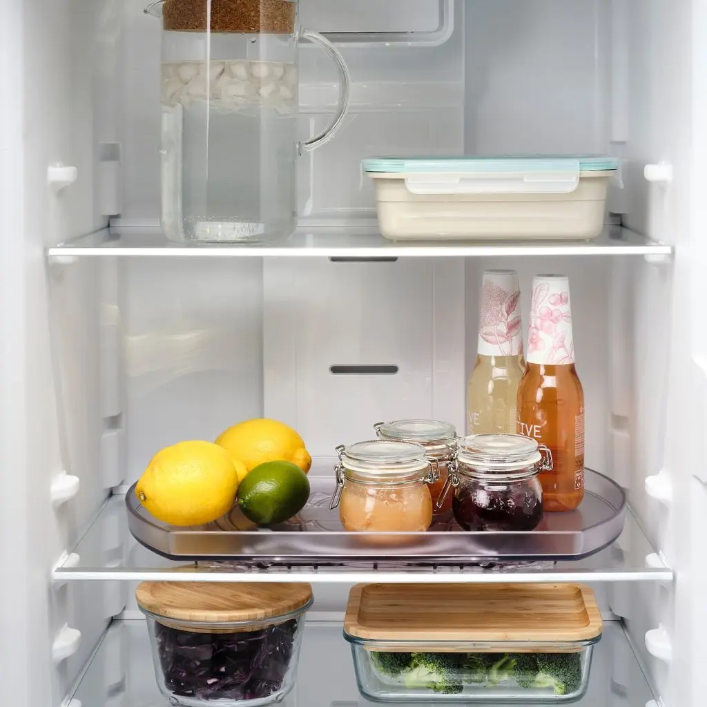 Выдвигается и поворачивается на 360°, обеспечивая хороший обзор и легкий доступ к нужным продуктам.Позволит сократить количество отходов, так как продукты не будут пропадать в недрах холодильника.Быстро и легко крепится к поверхности с помощью присосок.Благодаря бортикам предметы не будут соскальзывать.На присосках: легко снять, чтобы помыть.Подходит для большинства холодильников, а также для шкафов, ящиков и кухонных столешниц.Дизайнер