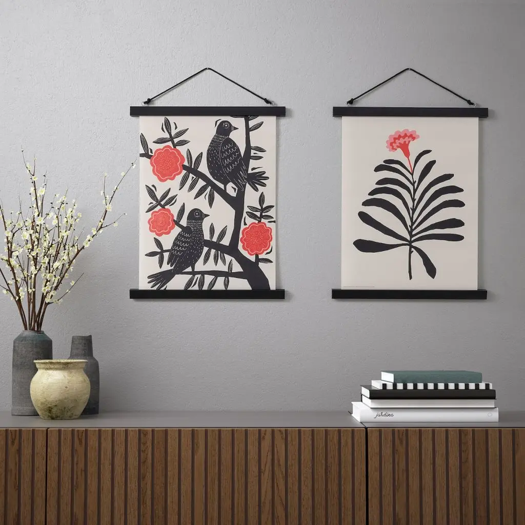 Подвесное текстильное панно, Птицы на дереве, 30x40 см