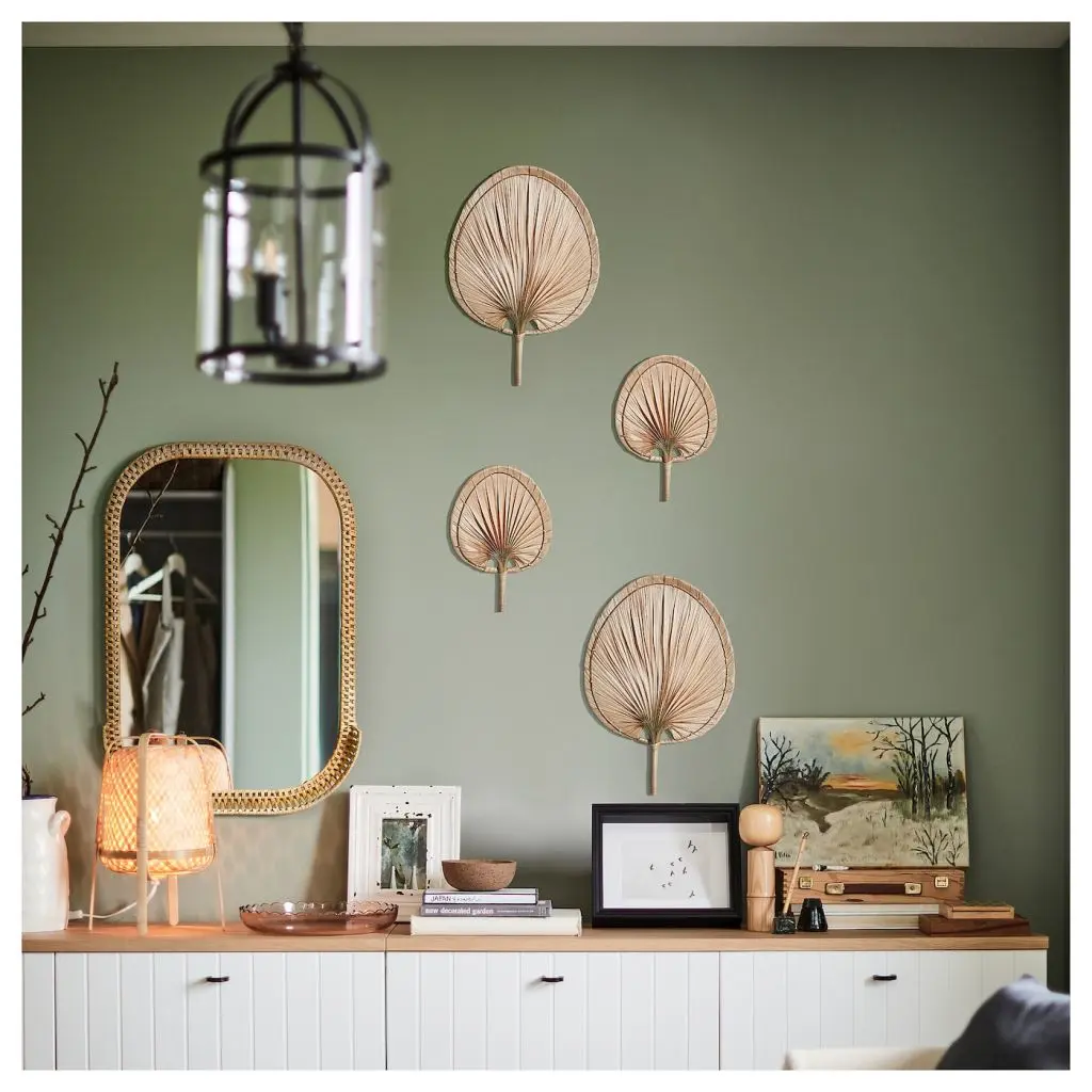 Пусть природа украсит ваши стены. Эти 2 настенных украшения имеют форму веера и сделаны вручную из высушенных пальмовых листьев. Легко повесить, чтобы добавить художественный штрих в гостиной, прихожей или над кроватью.