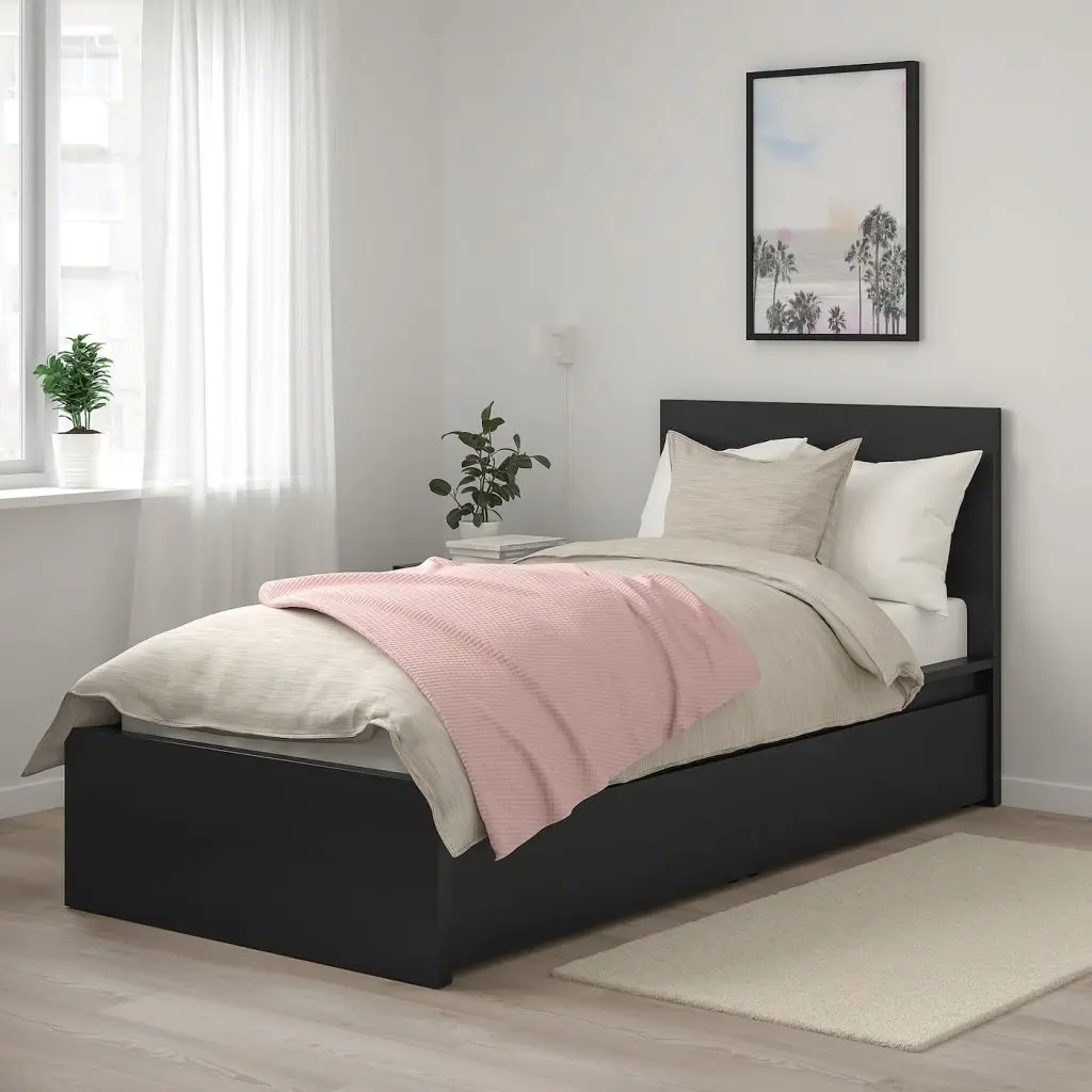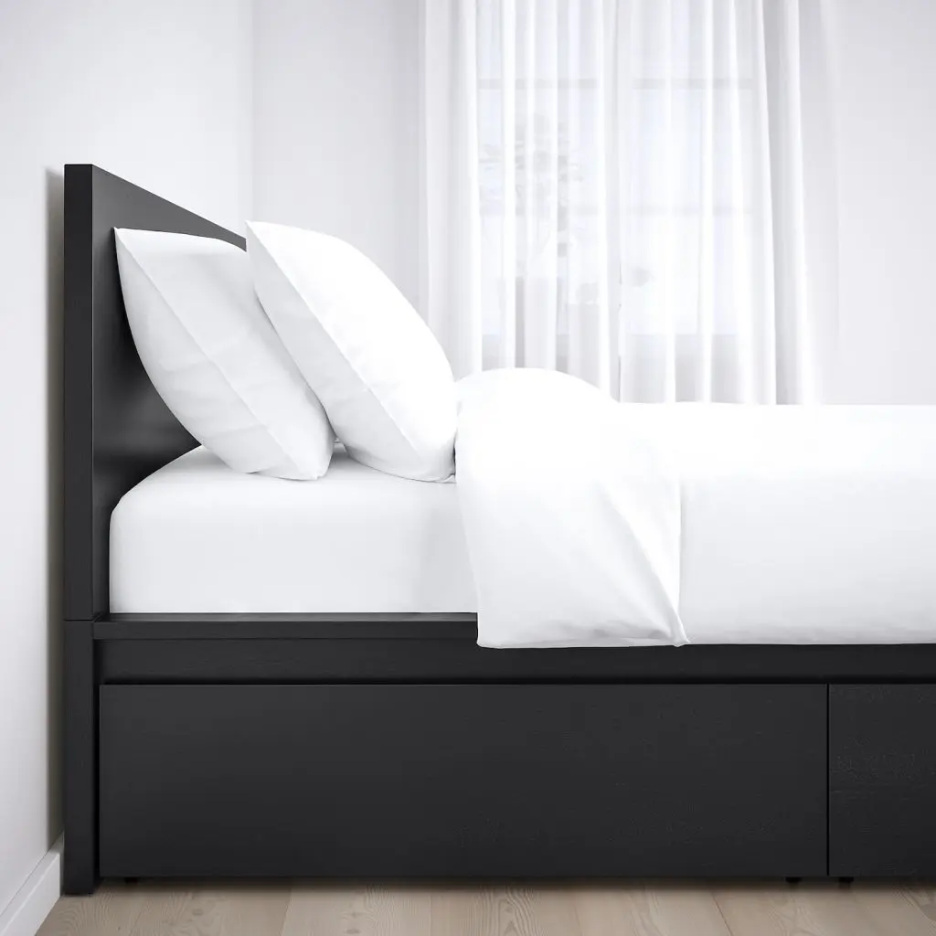 Два больших ящика превращают пустующее пространство под кроватью в практичное решение для хранения одеял, подушек и постельного белья.Благодаря колесикам ящики легко выдвигать и задвигать.Благодаря высокому изголовью в кровати удобно сидеть. Просто положите под спину подушки и наслаждайтесь чтением или просмотром любимого фильма.Каркас кровати универсального дизайна будет прекрасно смотреться с разным текстилем для спальни и сочетаться с другой мебелью.Регулируемые боковины кровати позволяют использовать матрасы разной толщины.Реечное днище состоит из 17 многослойных реек, которые приспосабливаются к весу тела и повышают упругость матраса.Реечное днище включено в стоимость, но упаковано отдельно.Матрас и постельное белье продаются отдельно.Дизайнер
