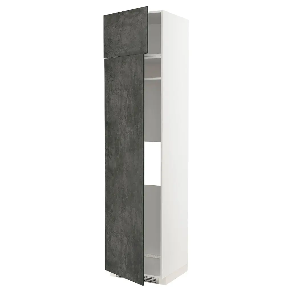 Высокий шкаф с ящиком д/духовки/СВЧ, белый, Воксторп глянцевый светло-бежевыйНожка, 60x60x140 см8 см