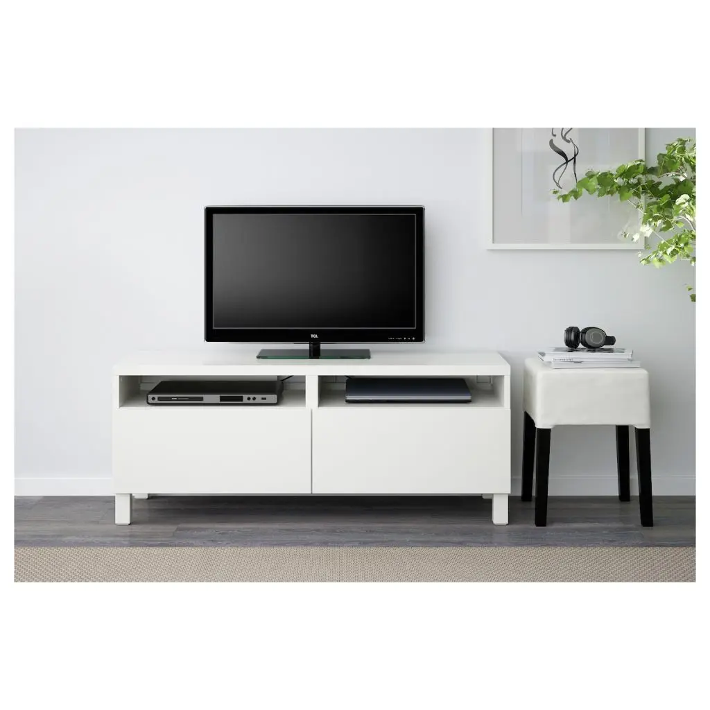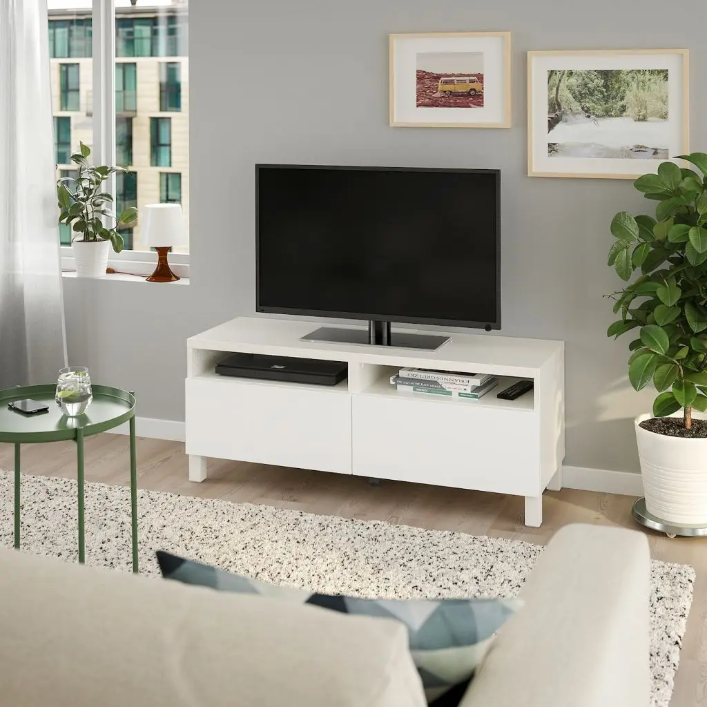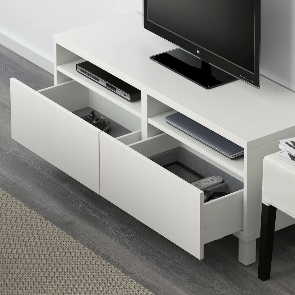 Благодаря доводчикам ящики закрываются плавно и бесшумно.Благодаря нескольким отверстиям на задней панели тумбы под ТВ провода от телевизора и других устройств всегда будут под рукой, но не на виду.Два ящика обеспечат порядок в хранении пультов, игровых приставок и других аксессуаров для ТВ.Ножки придают комбинации БЕСТО более легкий вид, поднимая модули на полом. Кроме того, это упрощает уборку.Специальное отверстие в верхней панели обеспечит удобное и компактное размещение проводов.Эту мебель необходимо крепить к стене с помощью прилагаемого стенного крепежа.Макс. нагрузка на верхнюю панель этой тумбы под ТВ: 50 кг.Для разных стен требуются различные крепежные приспособления. Подберите подходящие для ваших стен шурупы, дюбели, саморезы и т. п. (не прилагаются).Внутренние элементы для организации хранения в модулях БЕСТО продаются отдельно.Если вы выберете функцию плавного закрывания, рекомендуем дополнить фасады ручками, чтобы открывать ящики/шкафы было удобнее.Дизайнер
