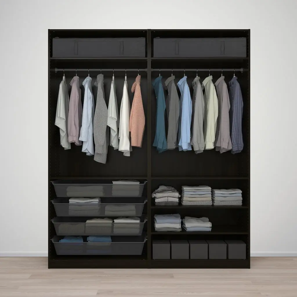 Бесплатно 10 лет гарантии. Подробнее об условиях гарантии – в гарантийной брошюре.Эту комбинацию ПАКС/КОМПЛИМЕНТ можно адаптировать в соответствии с вашими потребностями, воспользовавшись программой для проектирования гардеробов ПАКС.Регулируемые ножки позволяют скорректировать неровности пола.Раздвижные дверцы не требуют места при открывании.Устройство обеспечивает плавное и бесшумное открывание и закрывание дверей.С помощью программы планирования гардероба ПАКС вы можете легко дополнить свою комбинацию интегрированной подсветкой. После выбора источника освещения программа предложит необходимые аксессуары.Переверните панели, чтобы изменить внешний вид гардероба. Каждая сторона имеет свою отделку. Используйте один вариант отделки или сочетайте оба в одном решении.Сетчатый материал обеспечивает циркуляцию воздуха. Корзина подходит для хранения сложенной одежды и различных аксессуаров.Для раздвижных дверей не нужны ручки, что придает дизайну гардероба лаконичный облик, позволяя сочетать его с мебелью в разных стилях.Эту мебель необходимо крепить к стене с помощью прилагаемого стенного крепежа.Для разных стен требуются различные крепежные приспособления. Подберите подходящие для ваших стен шурупы, дюбели, саморезы и т. п. (не прилагаются).Для сборки этой мебели требуются два человека.Требуемая мин. высота потолка: 244 см. Следуйте инструкциям по сборке в упаковке.Аксессуары для организации хранения в гардеробе продаются отдельно.На платяную штангу можно повесить примерно 40 рубашек на плечиках.Дизайнер