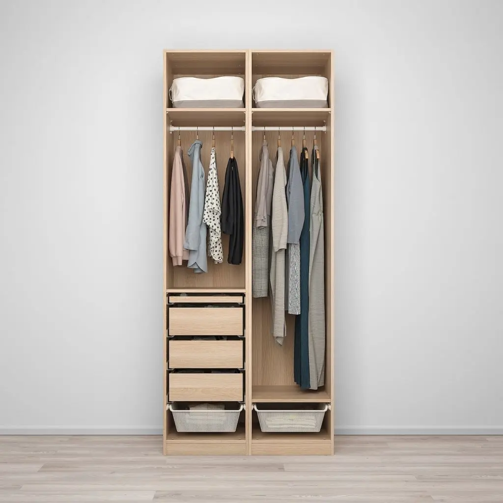 Бесплатно 10 лет гарантии. Подробнее об условиях гарантии – в гарантийной брошюре.Эту комбинацию ПАКС/КОМПЛИМЕНТ можно адаптировать в соответствии с вашими потребностями, воспользовавшись программой для проектирования гардеробов ПАКС.Регулируемые ножки позволяют скорректировать неровности пола.Благодаря петлям с интегрированным доводчиком дверцы закрываются плавно и бесшумно.С помощью программы планирования гардероба ПАКС вы можете легко дополнить свою комбинацию интегрированной подсветкой. После выбора источника освещения программа предложит необходимые аксессуары.Эту мебель необходимо крепить к стене с помощью прилагаемого стенного крепежа.Для разных стен требуются различные крепежные приспособления. Подберите подходящие для ваших стен шурупы, дюбели, саморезы и т. п. (не прилагаются).Для сборки этой мебели требуются два человека.Требуемая мин. высота потолка: 244 см. Следуйте инструкциям по сборке в упаковке.Аксессуары для организации хранения в гардеробе продаются отдельно.Ручки продаются отдельно.На платяную штангу можно повесить примерно 20 рубашек на плечиках.Дизайнер