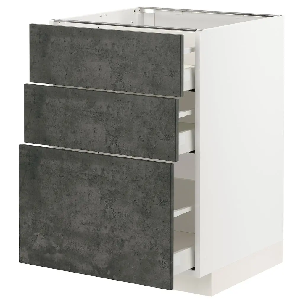 Код кухонного шкафа ME/MA 149Благодаря доводчику ящики закрываются плавно, мягко и бесшумно.Ящики выдвигаются полностью, что обеспечивает удобный обзор и доступ к содержимому.Ящики с плавным ходом и стопором.Самозакрывающиеся ящики.Каркас имеет устойчивую конструкцию благодаря стенкам из ДСП толщиной 18 мм.Для разных стен требуются различные крепежные приспособления. Подберите подходящие для ваших стен шурупы, дюбели, саморезы и т. п. (не прилагаются).Ножки и цоколи продаются отдельно.Можно дополнить ручкой.Дизайнер